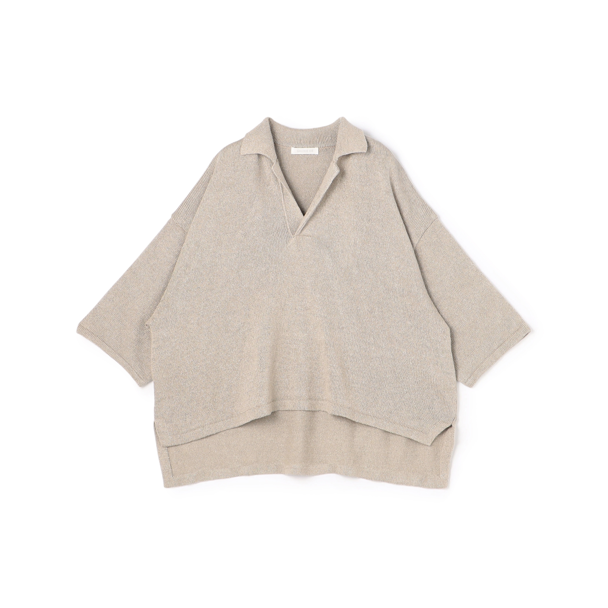 スキッパー開きのニットはゆったりとしたサイズ感でリラックスして着れるアイテム。