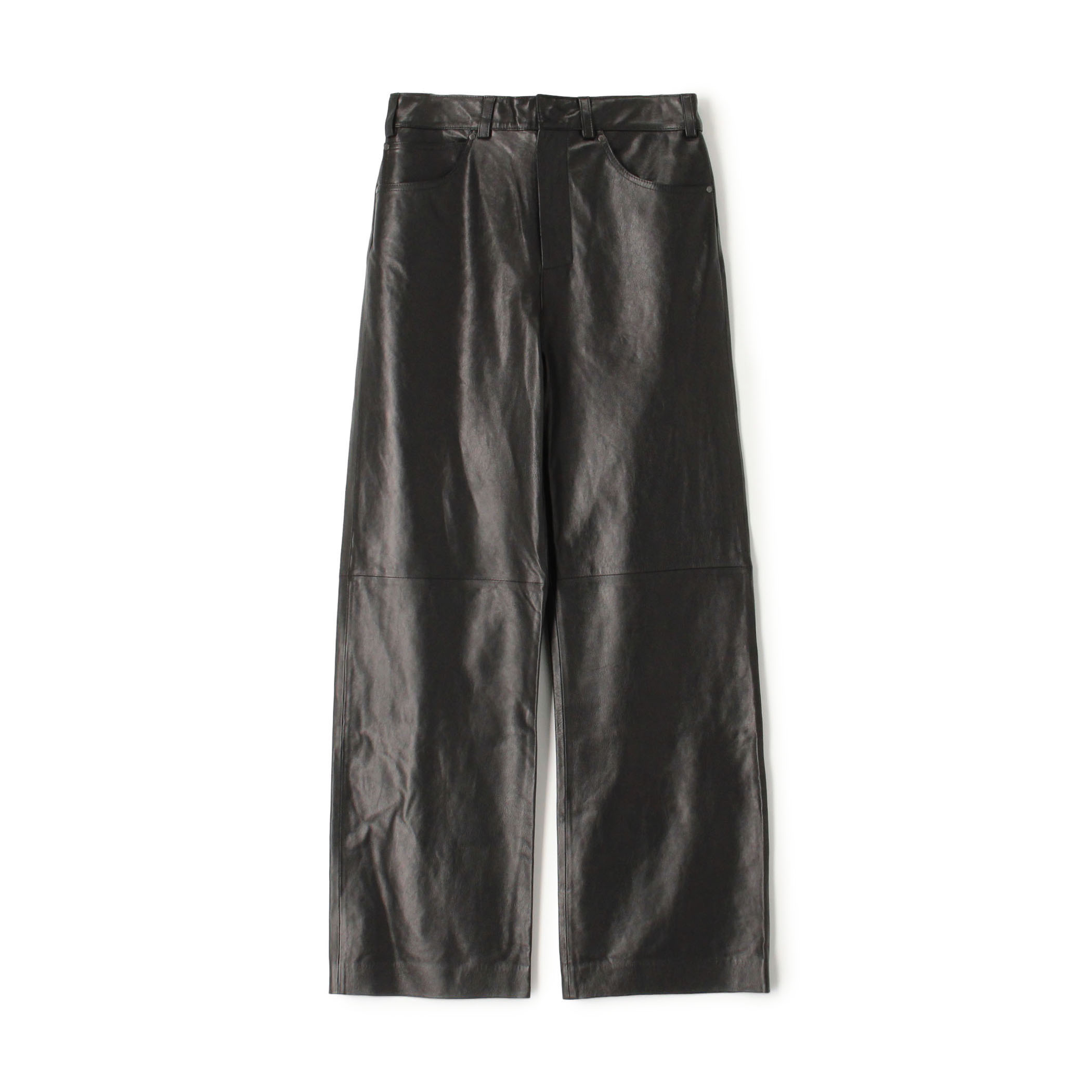 〈CABaN〉コットンカシミヤプルオーバーの新色をメインにレザーパンツの異素材感と足元のコントラストがポイントです。