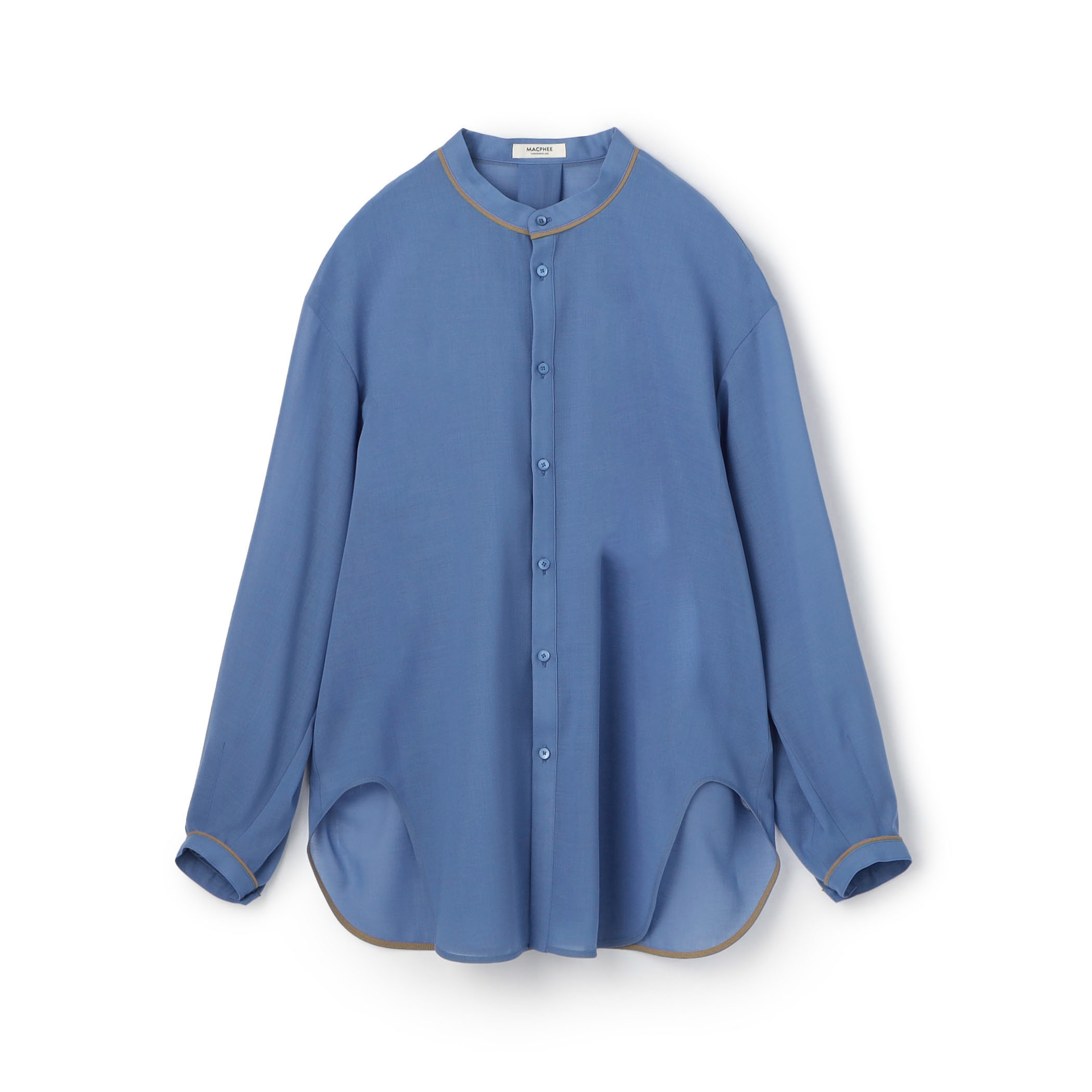 ウールとポリエステルの混紡糸を使用したボイル素材が特徴的な、MACPHEEのボリュームスリーブチュニックブラウス。