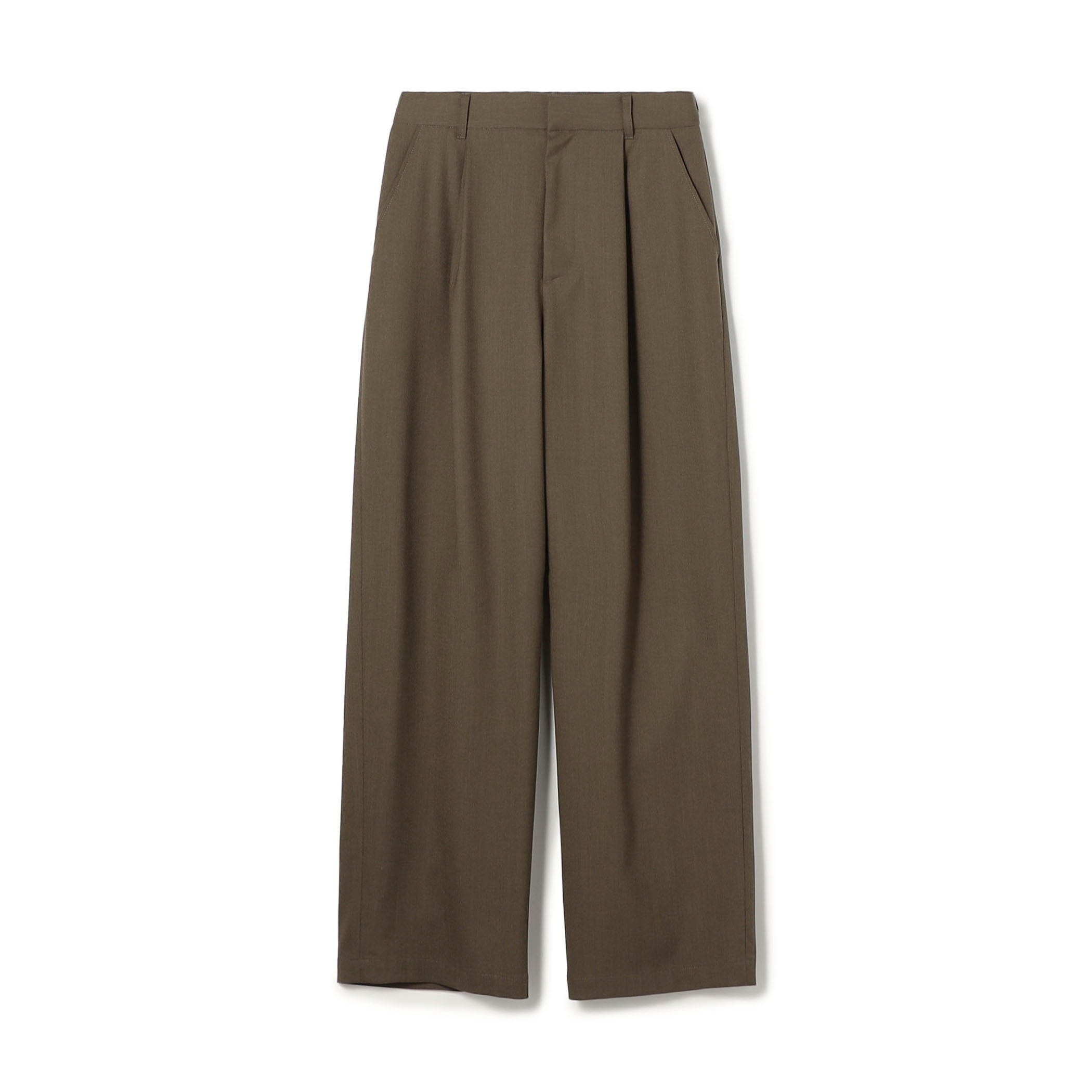 ポンチョ型のカシミヤニットにウールストレッチのパンツを合わせたデイリースタイリング。