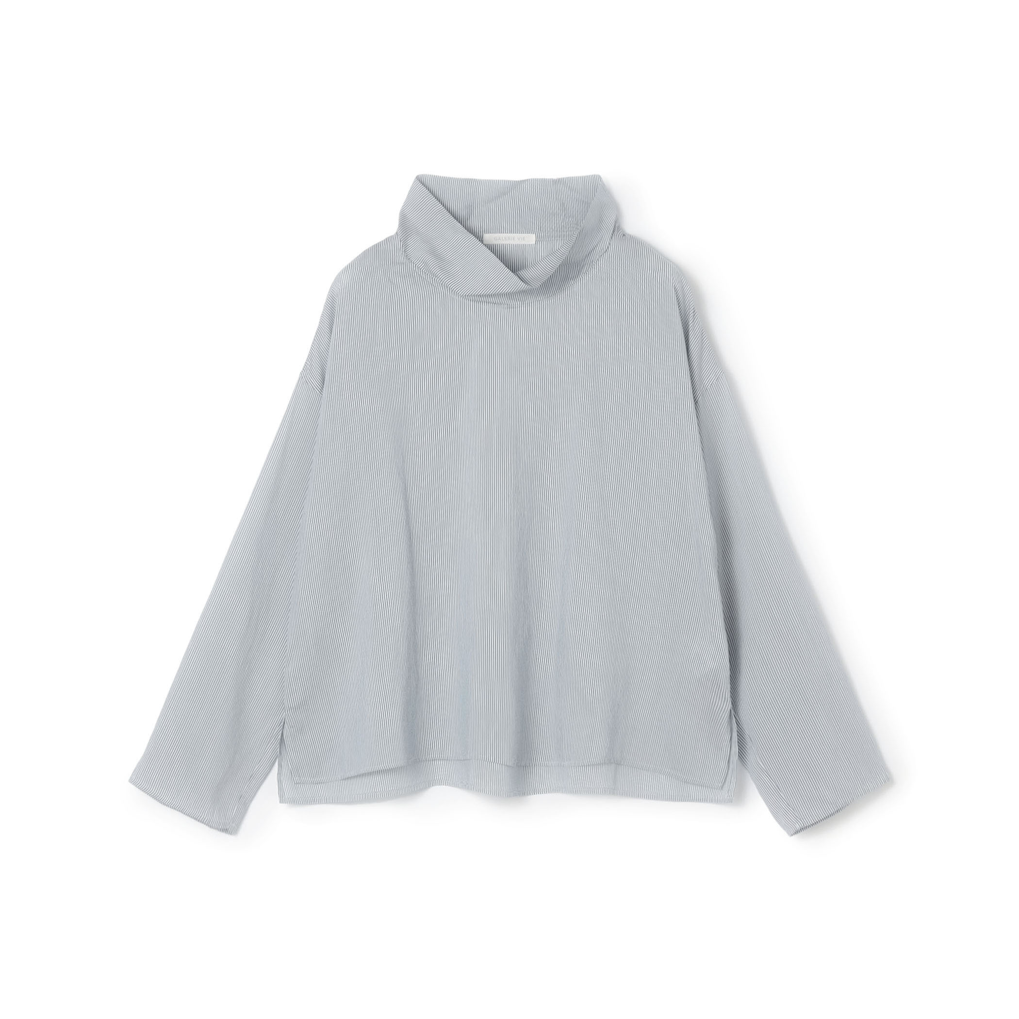 シルク素材のプルオーバーとシャツをレイヤードしたコーディネート。ハーフスリーブのプルオーバーは暑い時期は1枚で、肌寒い時期はレイヤードすることで長く楽しんでいただけます。さらっとなめらかな肌触りが特徴で、シルクながらも手洗いが可能です。シャツは襟のデザインを活かし、ニットと組み合わせて着ていただくのもおすすめです。