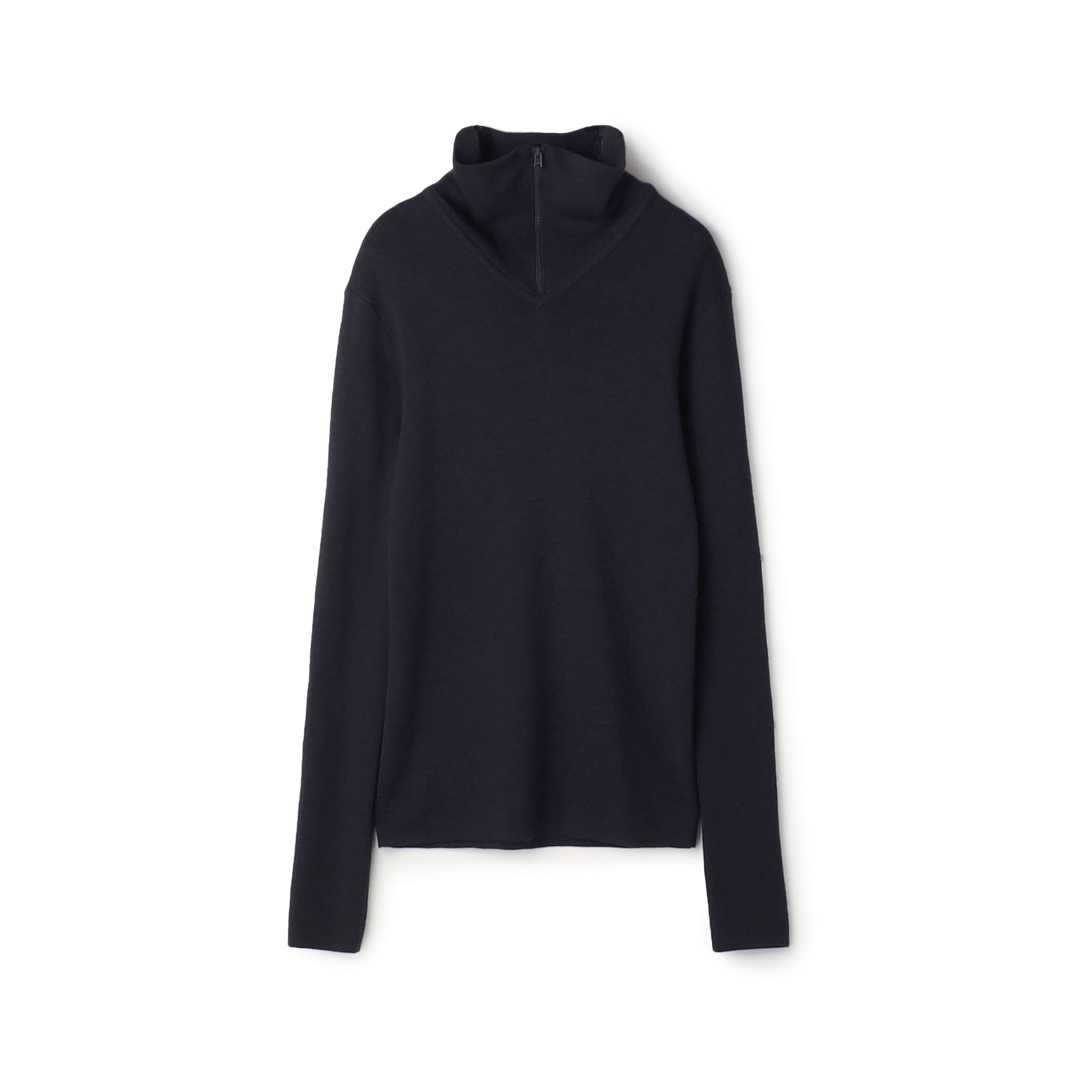 まさに今季の気分を映す、細身のジップアップニット。