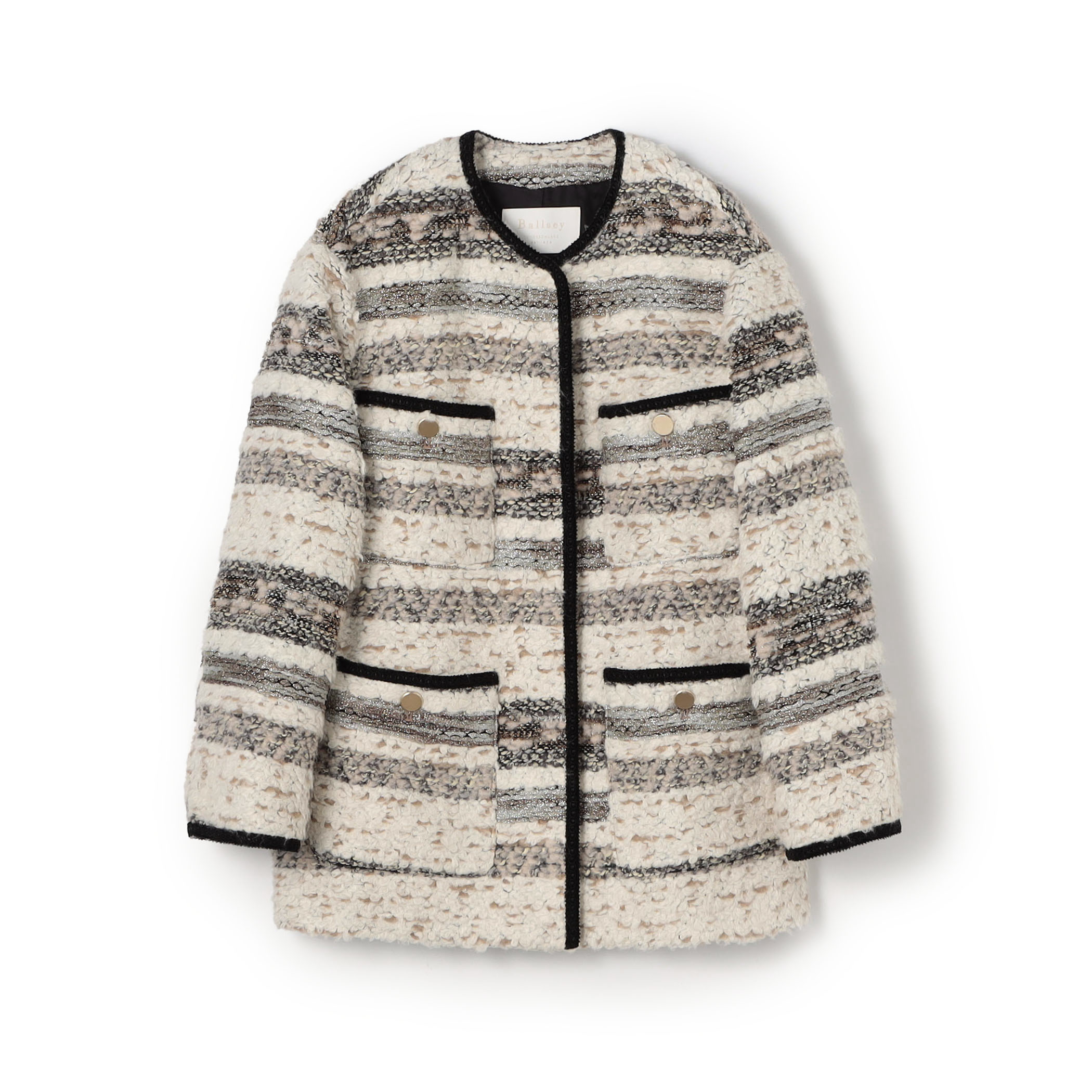贅沢なニットツイード素材を使用した〈Ballsey〉のジャケットは、1点投入で華やかな印象に。