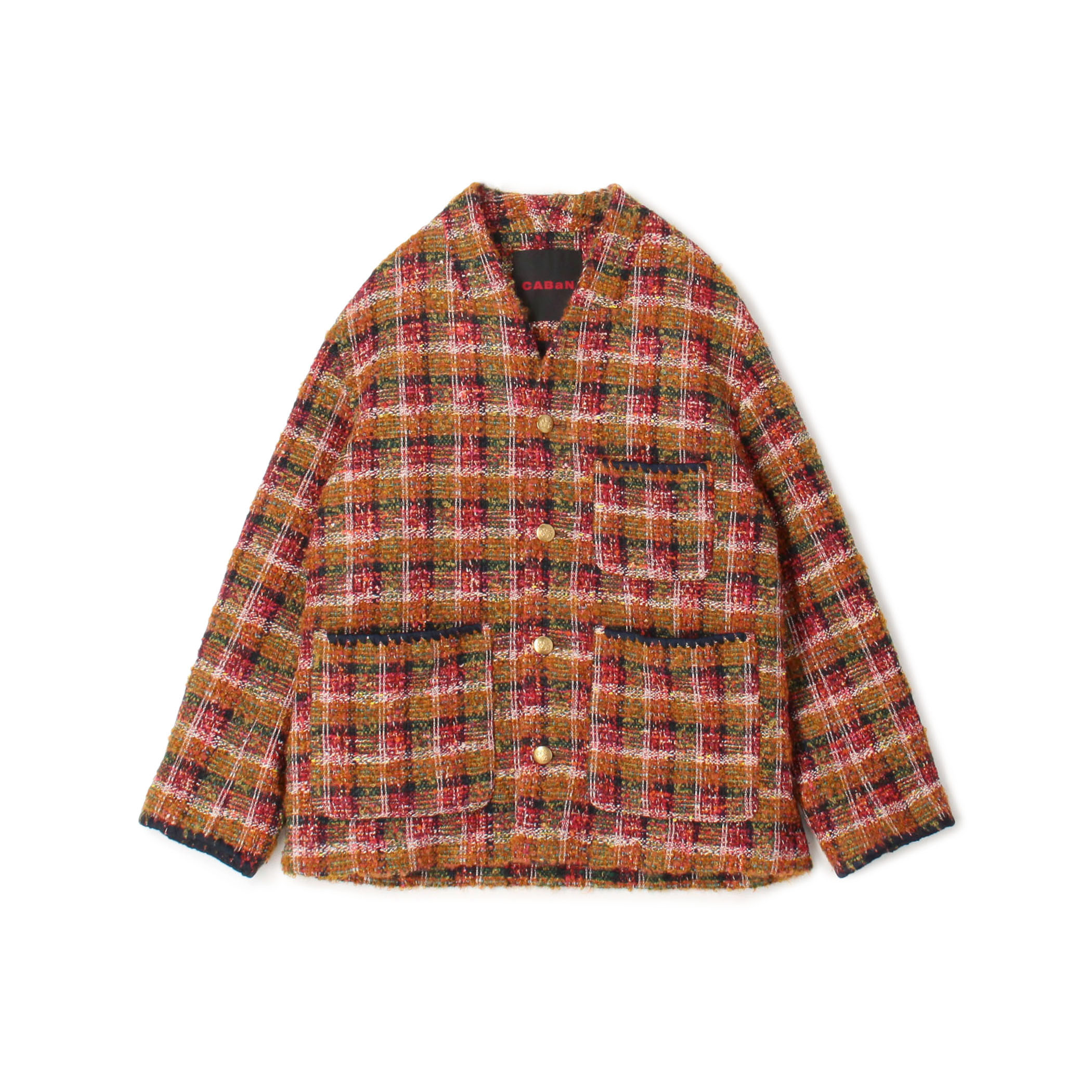 色鮮やかな軽くて暖かく膨らみのあるノーカラージャケット。