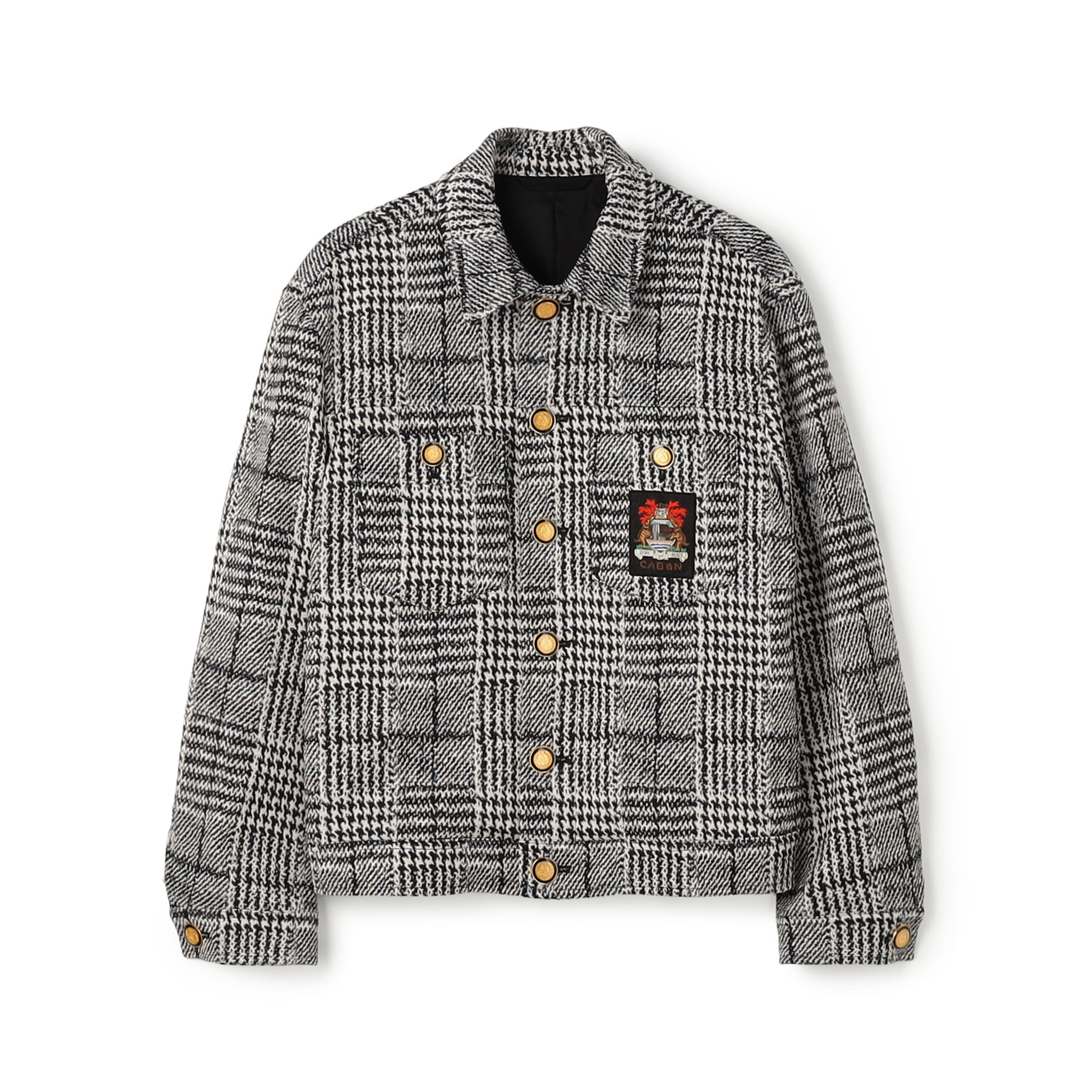 さらに柄をずらした遊び心ある表現と、ハンドメイドエンブレムやゴールドメタルボタンを施しこだわりを詰め込みました。