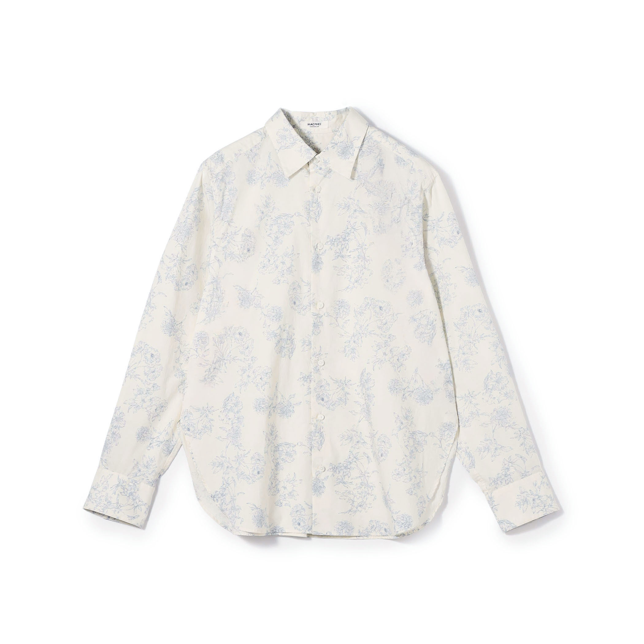 インナーにはフラワープリントのシャツを合わせ、程よく華やぎをプラス。