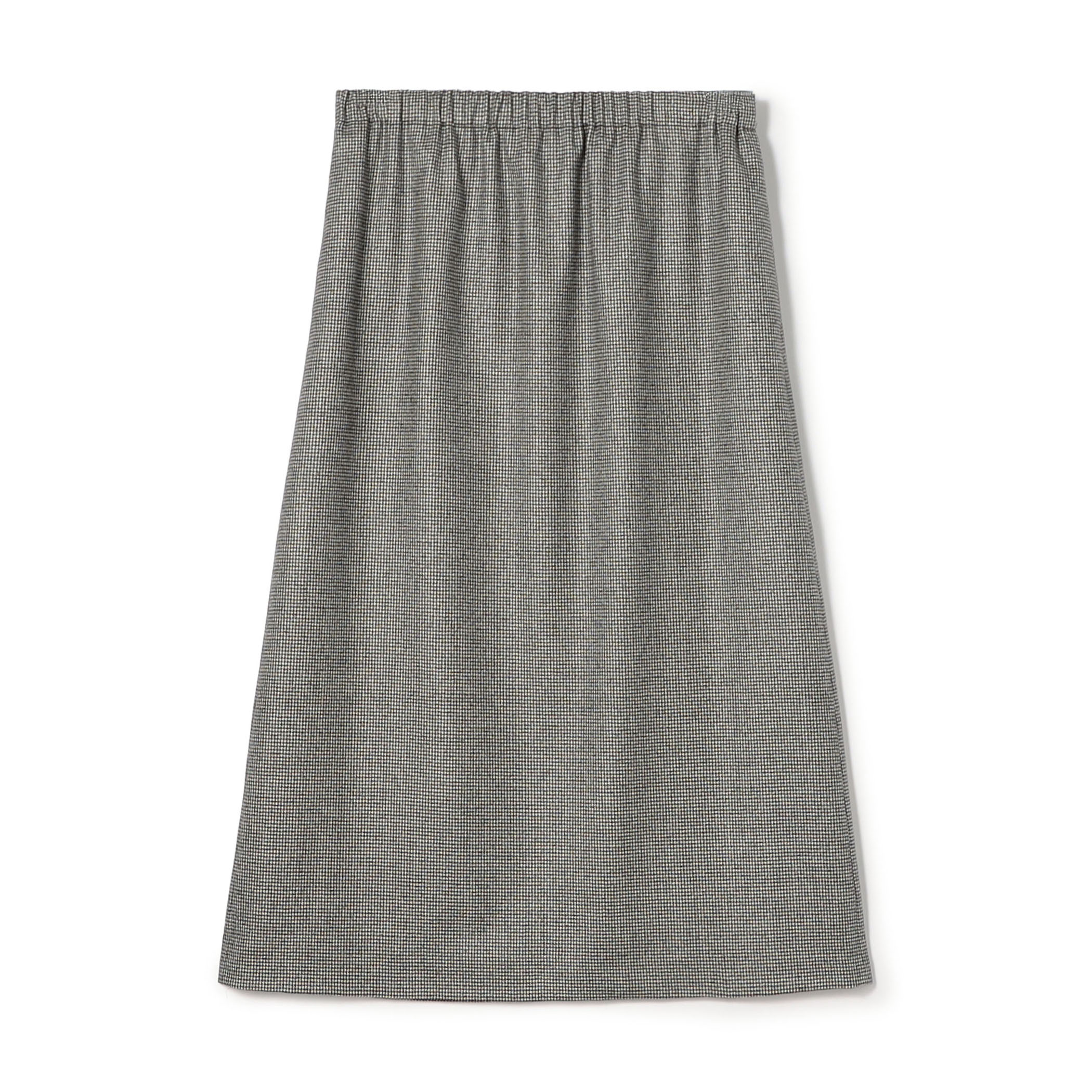 黄色の カシミヤダブルフェイスマフラーをポイントに、シンプルに纏めたスカートスタイル。