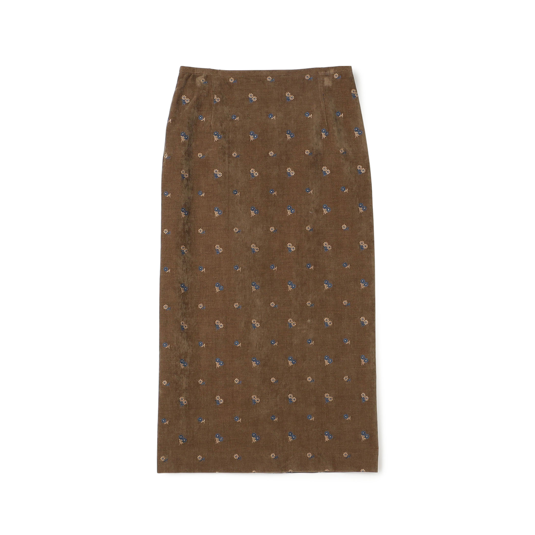 ベルベット素材にマーガレット刺繍を散りばめた、華やかさと品の良さを兼ね備えたスカートです。