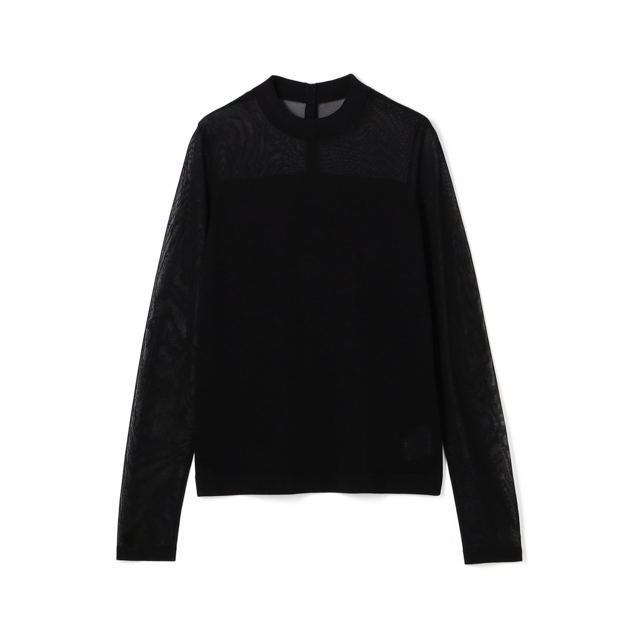 DES PRÉSのシルクのニットは、透け感が魅力的なモードな1着です。黒でも重く見えず、上品な光沢感も兼ね備えています。