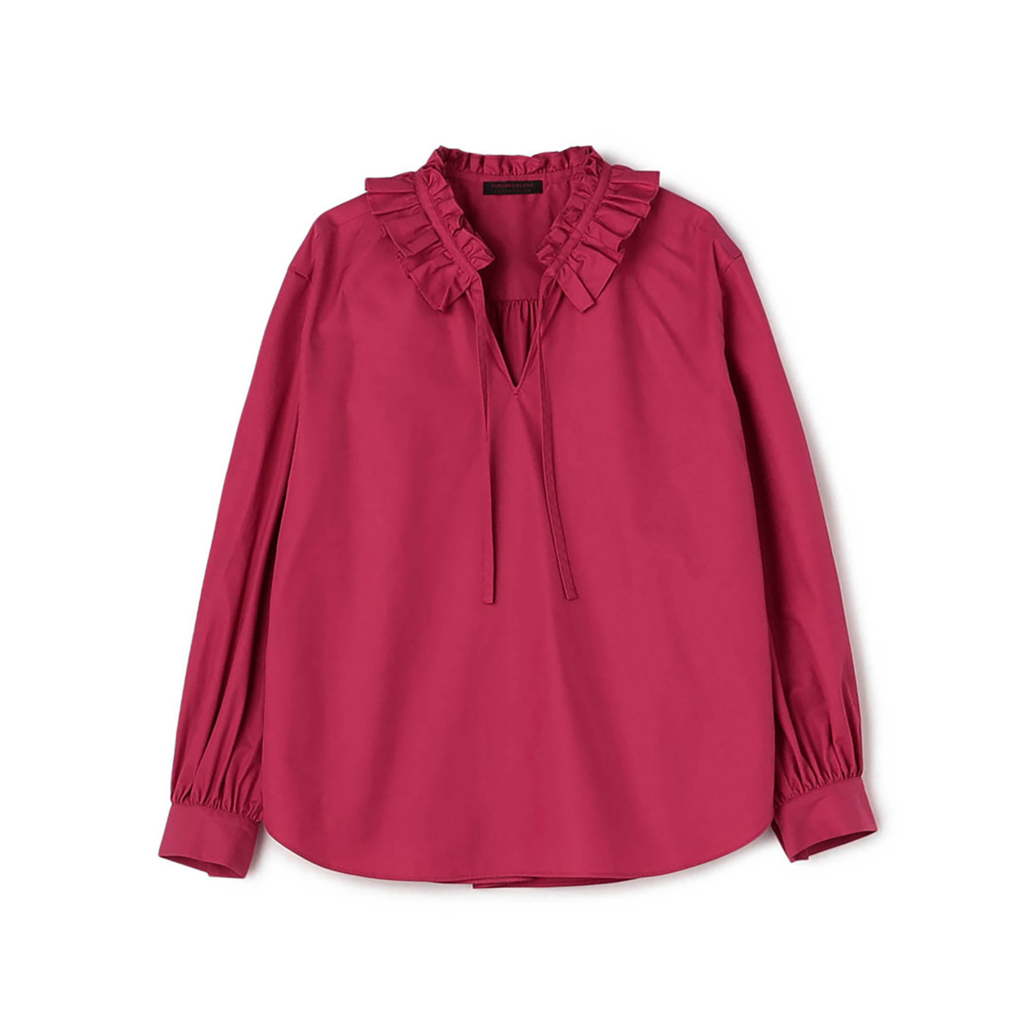 ハリ感を楽しめるコットン素材のブラウス。はっきりした色使いが 大胆なフリルの甘さを軽減してくれ、メリハリのあるスタイリングに仕上がります。