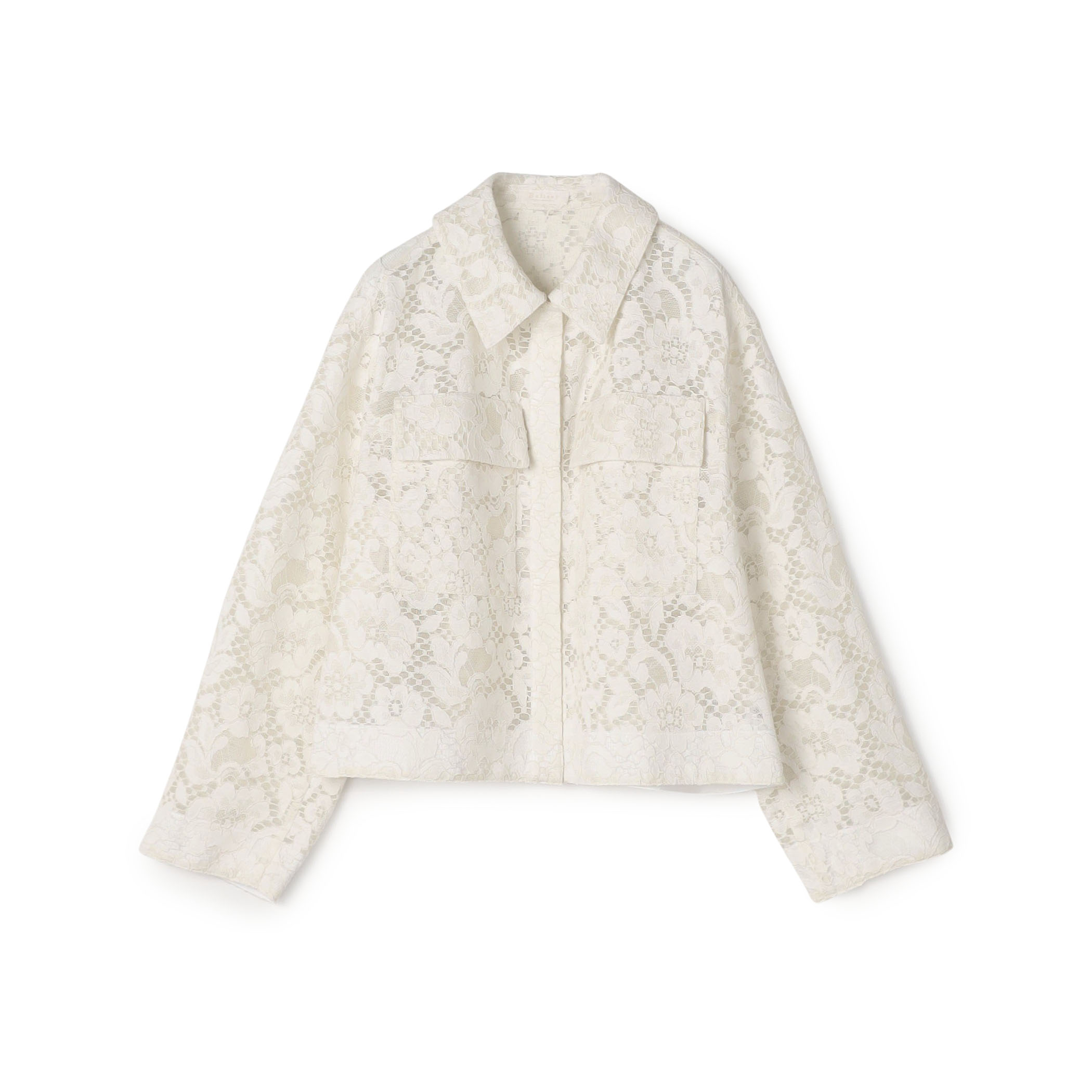 〈Ballsey〉ステンカラーブルゾンは、花柄のレースが上品な印象ながらもデイリー使いしやすいカジュアルなデザインが魅力。