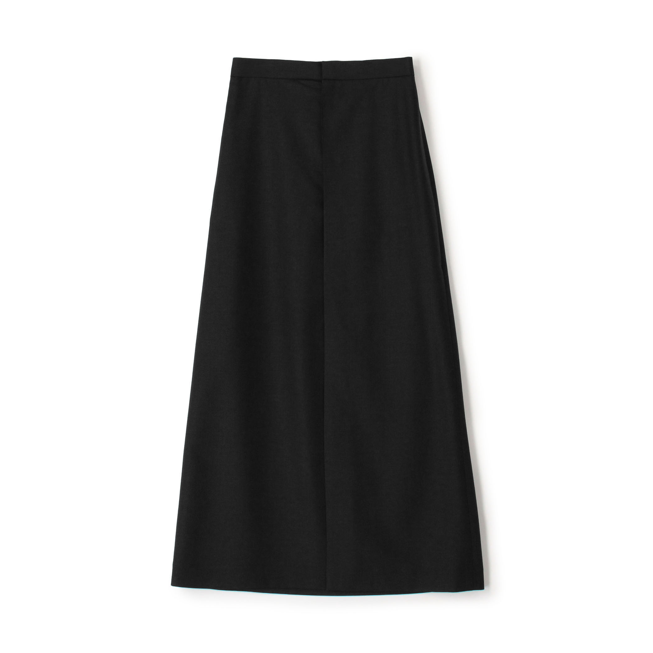 〈Edition〉のウールスカートは、一般的なウール糸に比べて毛羽が少なく、細番手ながらも強度と耐久性があり、シワにもなりにくいので扱いやすいのが特徴です。一見シンプルに見えますが、フロントジップや表情のあるラップ型デザインで〈Edition〉らしいモードでクールなスタイリングにもご使用頂けます。