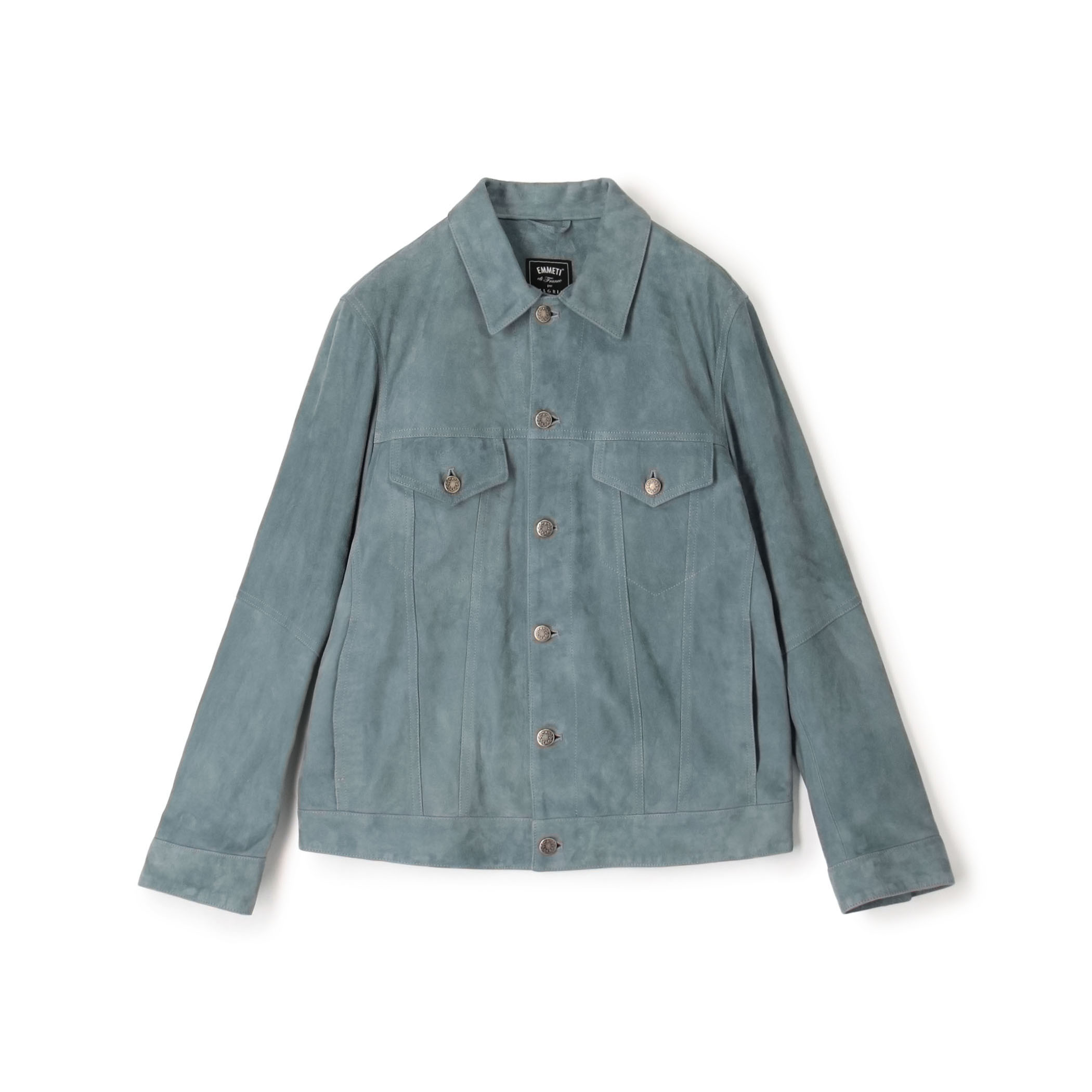 滑らかな表面感で高級感のあるラムスエードを別注使用した〈EMMETI(エンメティ)社に完全別注したトラッカージャケット。