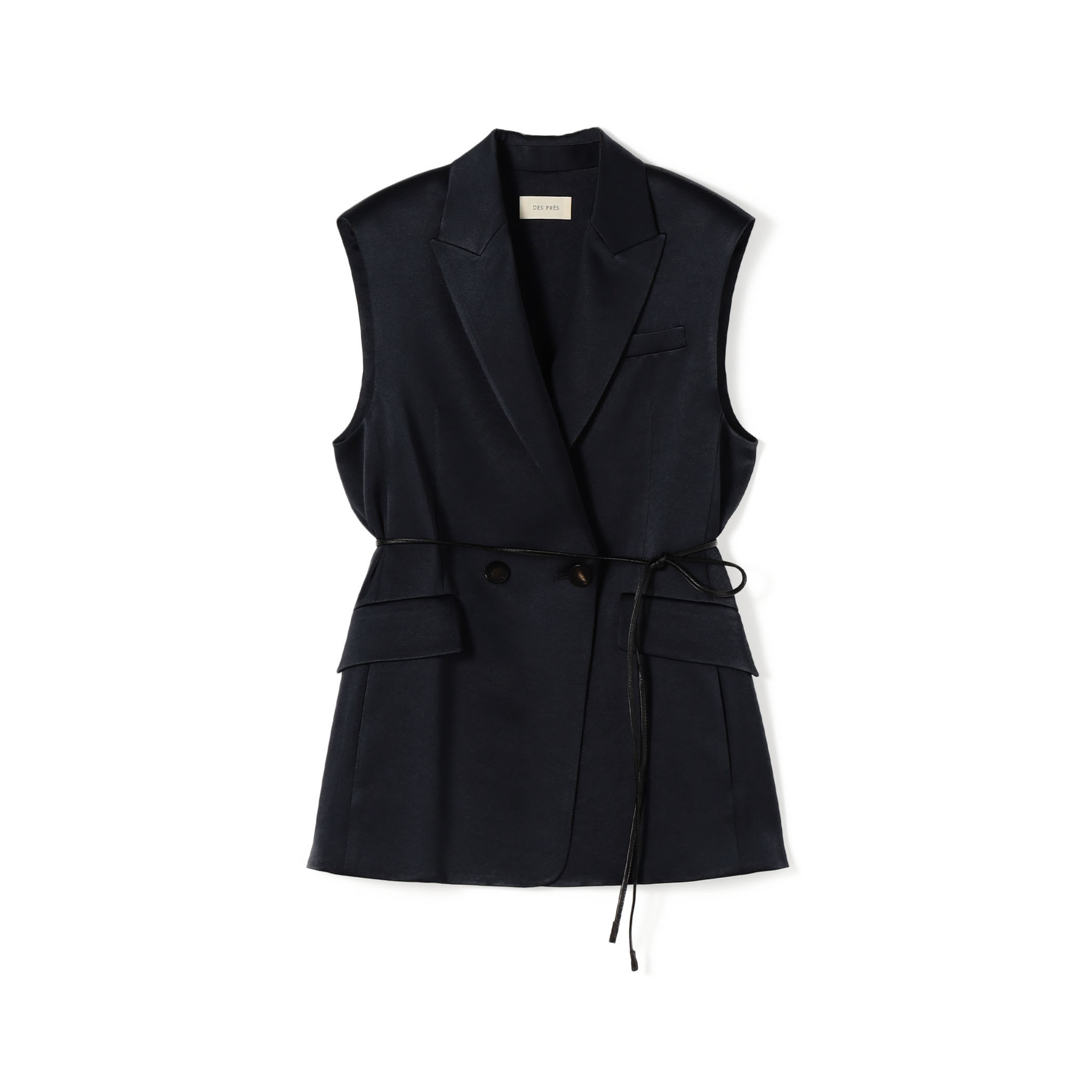 ジレはシャープさとエレガンスさを併せ持ち、付属のレザーベルトでウエストマークするのがおすすめです。