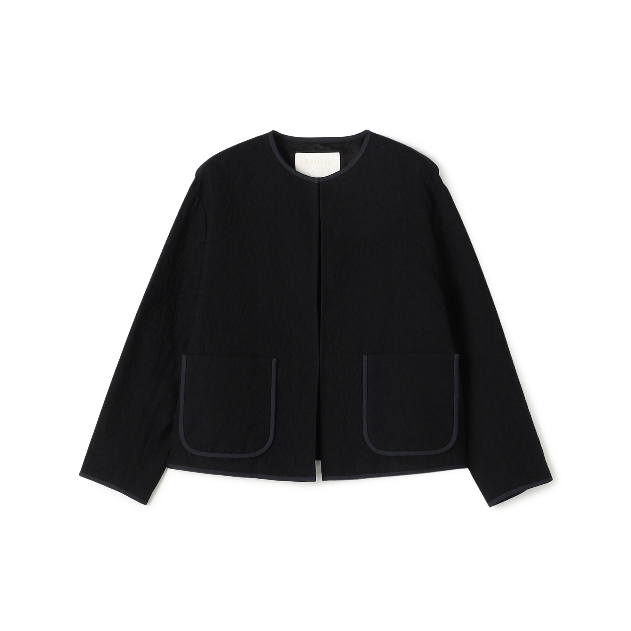 ジャガードの生地を使用し、シンプルながらも華やかな印象でお召しいただけるジャケットです。