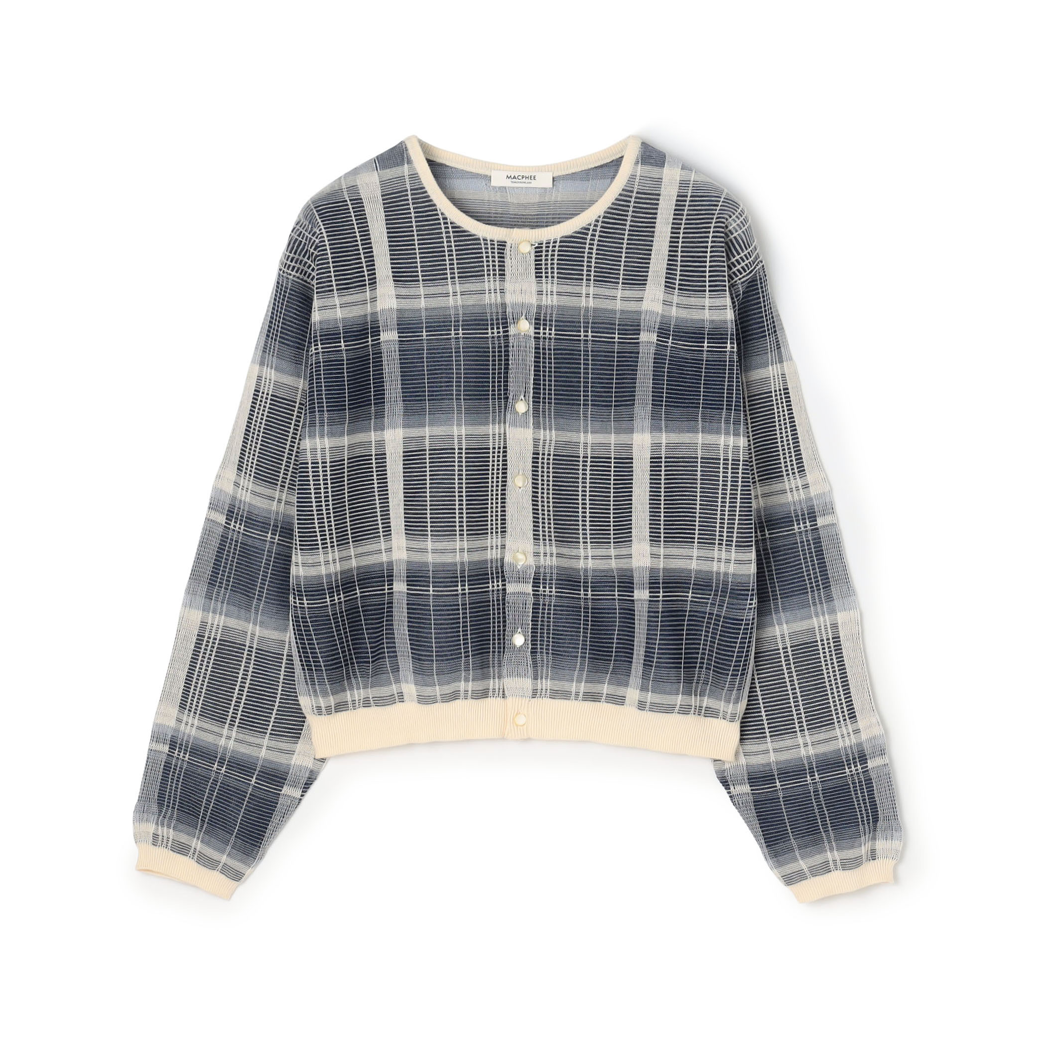 カーディガンはトレンド感のあるショート丈でワンピースやボリュームのあるボトムスとも相性抜群の一枚。