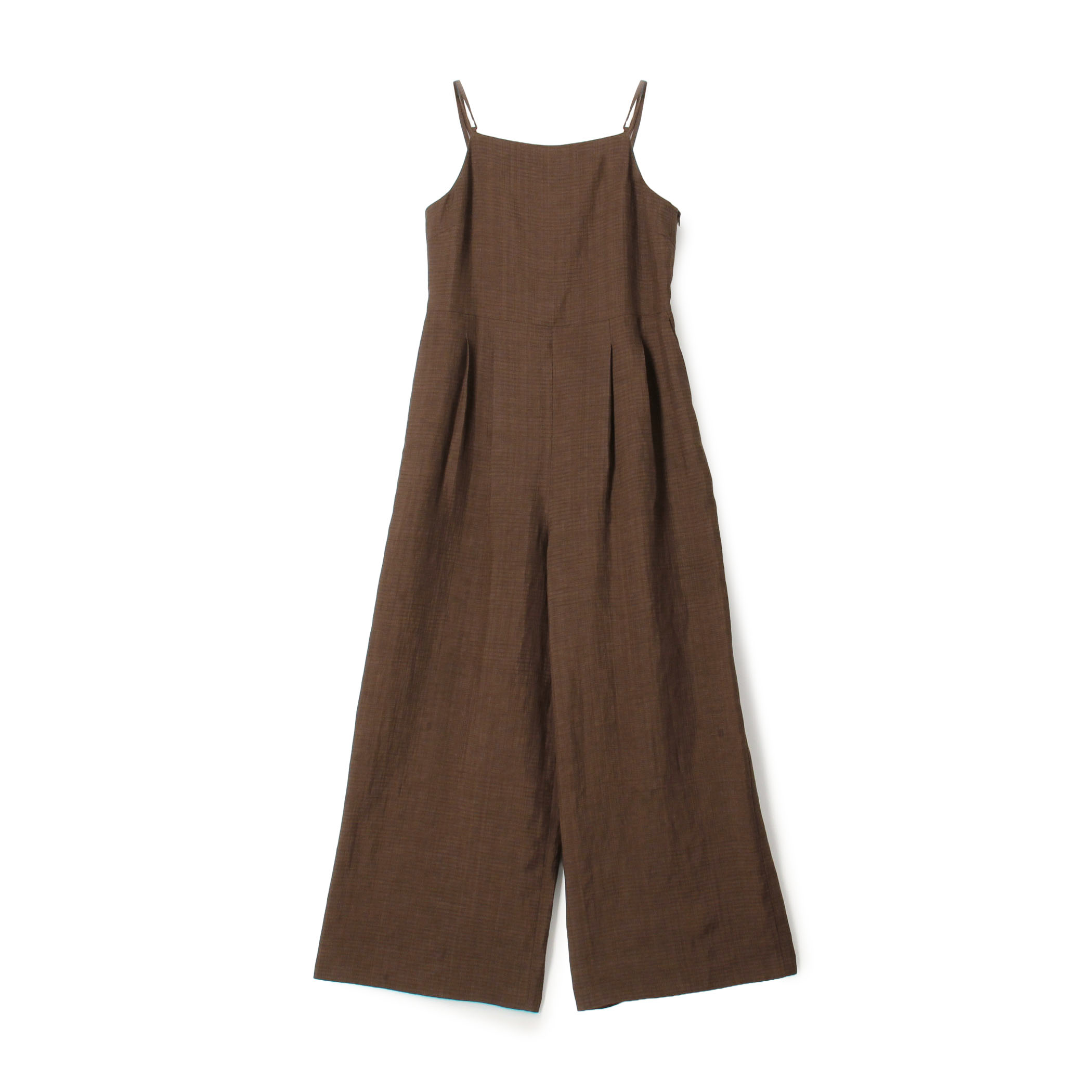 甘めレース素材とマニッシュなオールインワン。ピンクと落ち着きのあるブラウン。