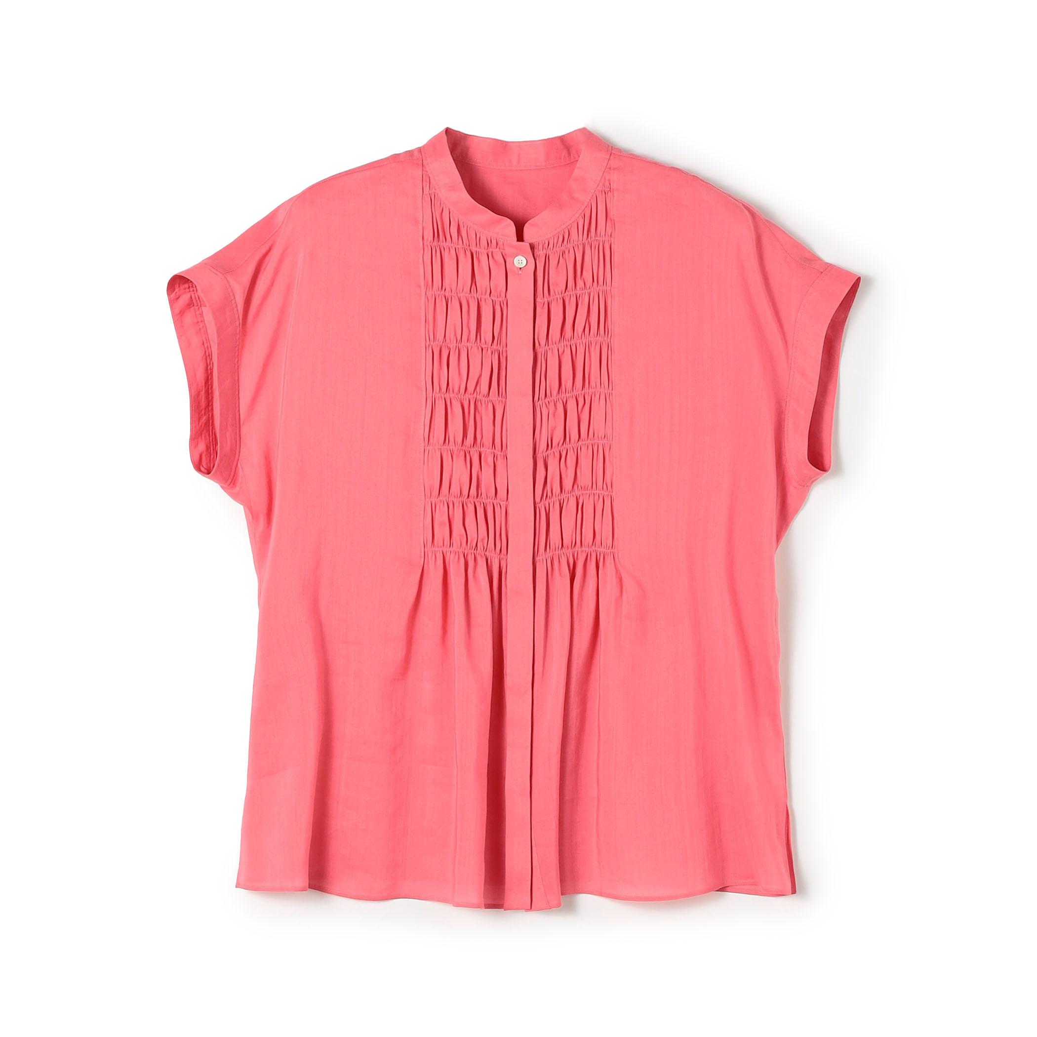 ブラウスは天然繊維ならではの清涼感のあるナチュラルな質感と再生繊維のしなやかさがバランス良くミックスされた上品な表情の一着です。