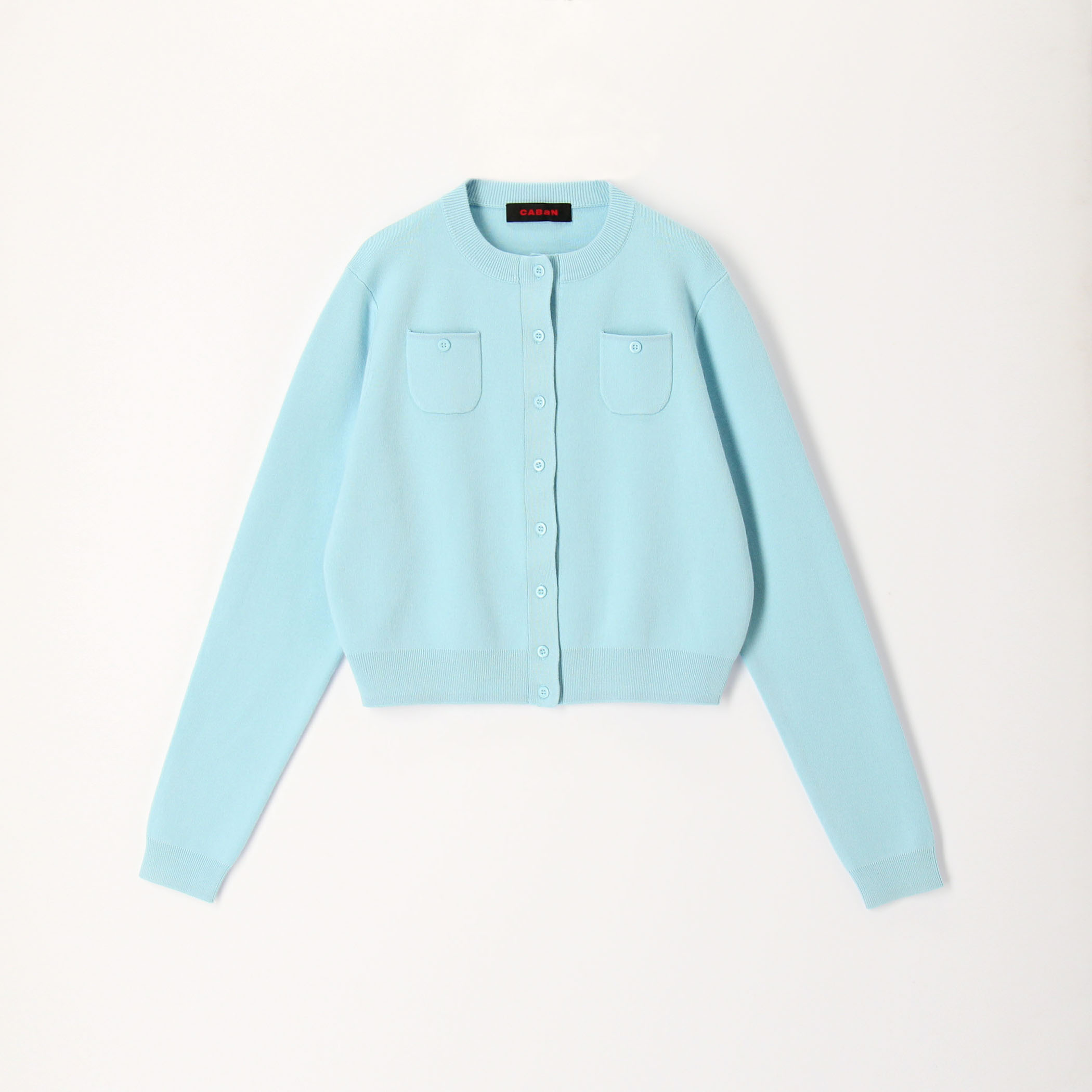 すっきりとした着丈のカーディガンはボリュームのあるボトムスと相性が良いです。