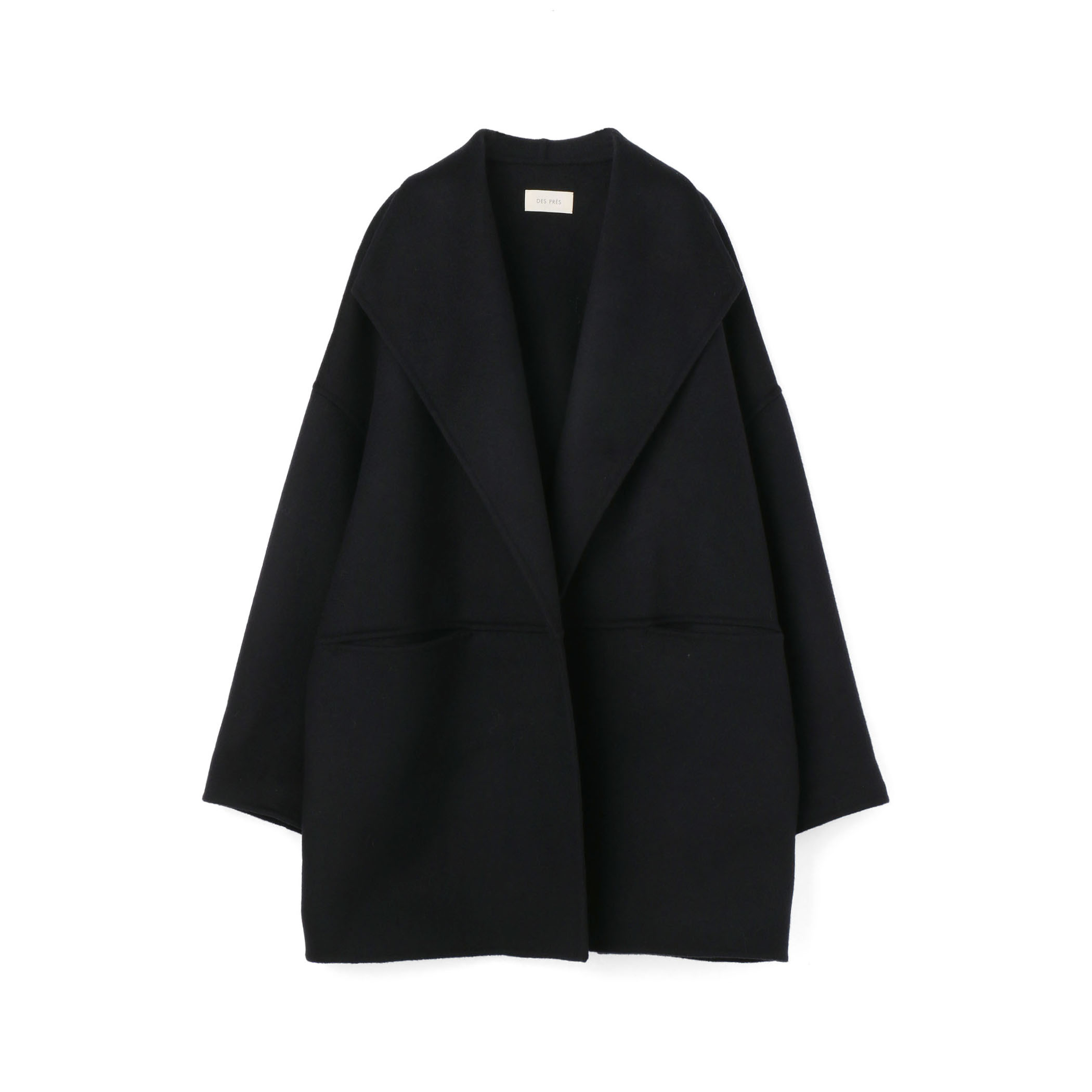 〈DES PRÉS〉ダブルフェイスメルトンビーバー ワイドカラーコートは、ゆったりとした肩の落ちたシルエットでシーンを選ばず着用できる一着です。