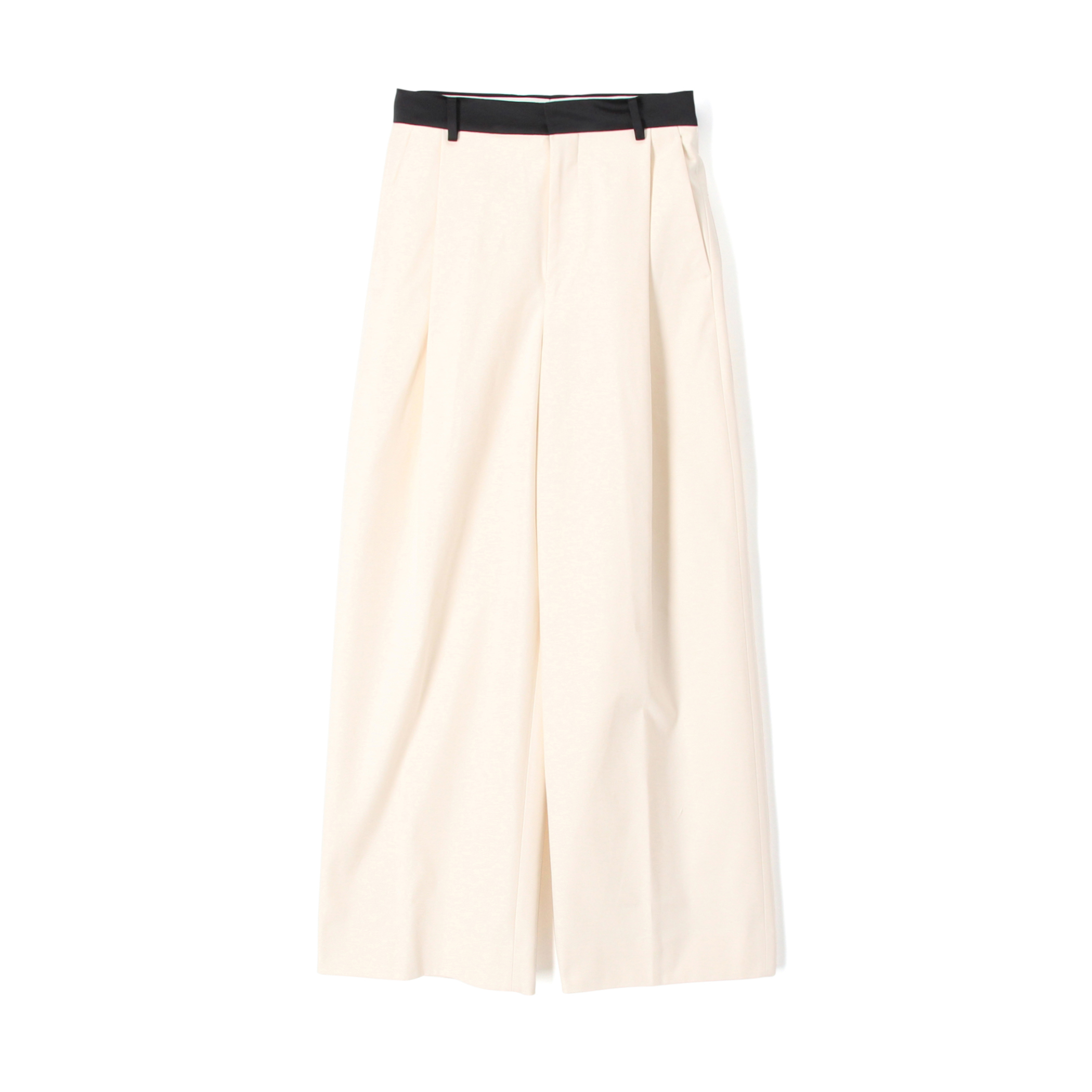 ワイドパンツと合わせて、甘くなりすぎないワントーンスタイルに仕上げました。