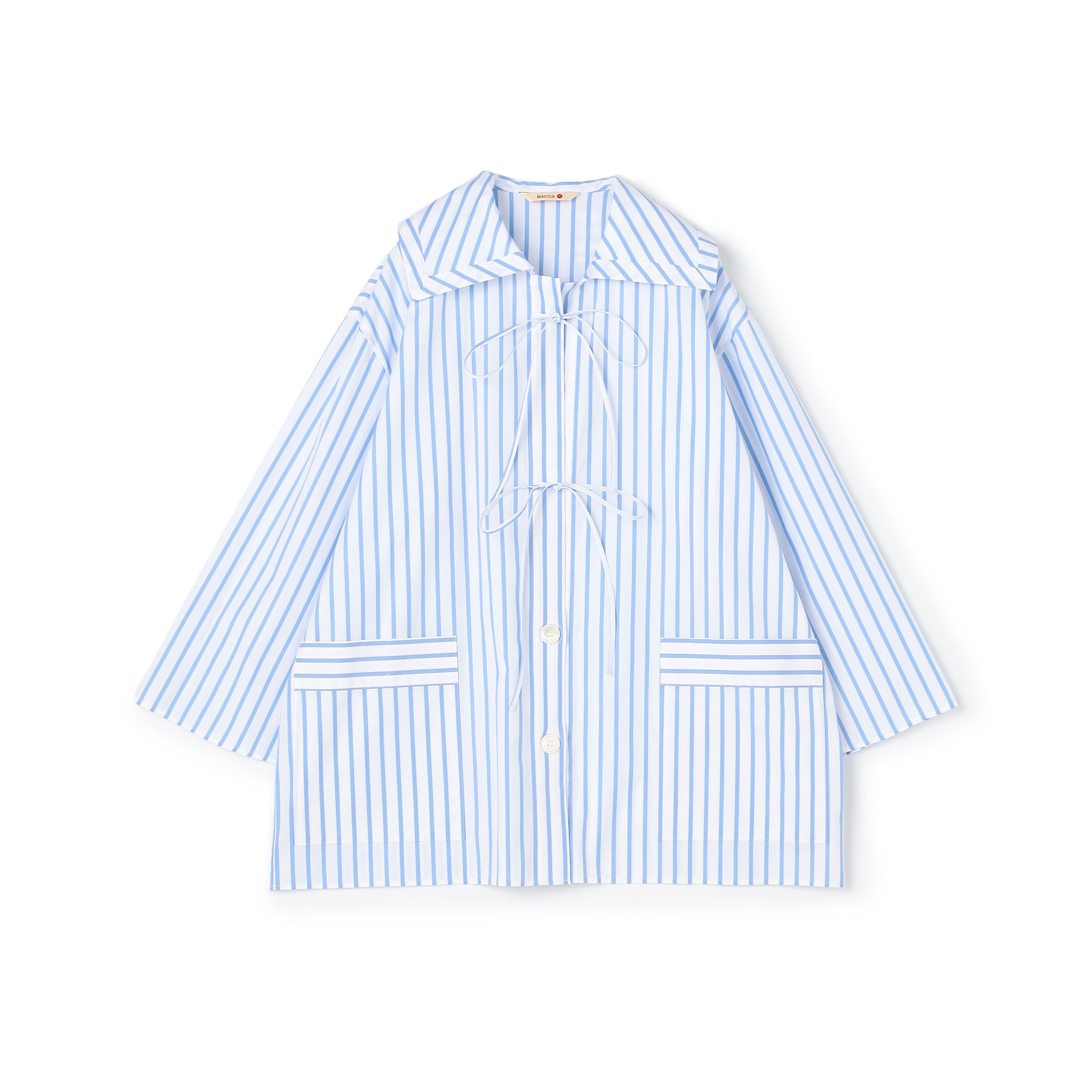 〈BACCA〉イタリアンストライプ シャツカーディガンは、シャツとしてももちろんですが、夏の羽織としても活躍する1枚。