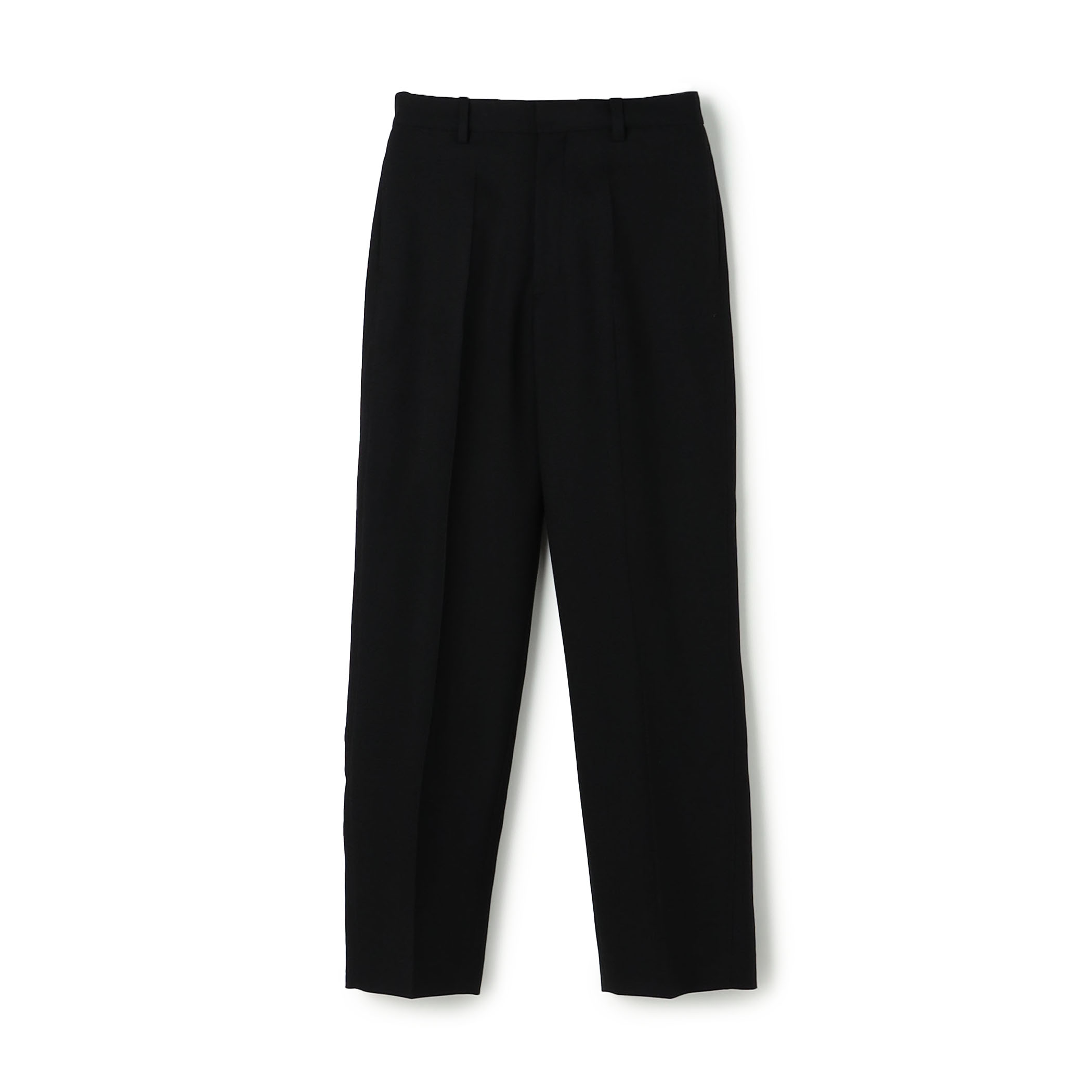 シャープな印象のブラックのスラックスに合わせて、スニーカーを革靴のように履いてみるのもおすすめです。