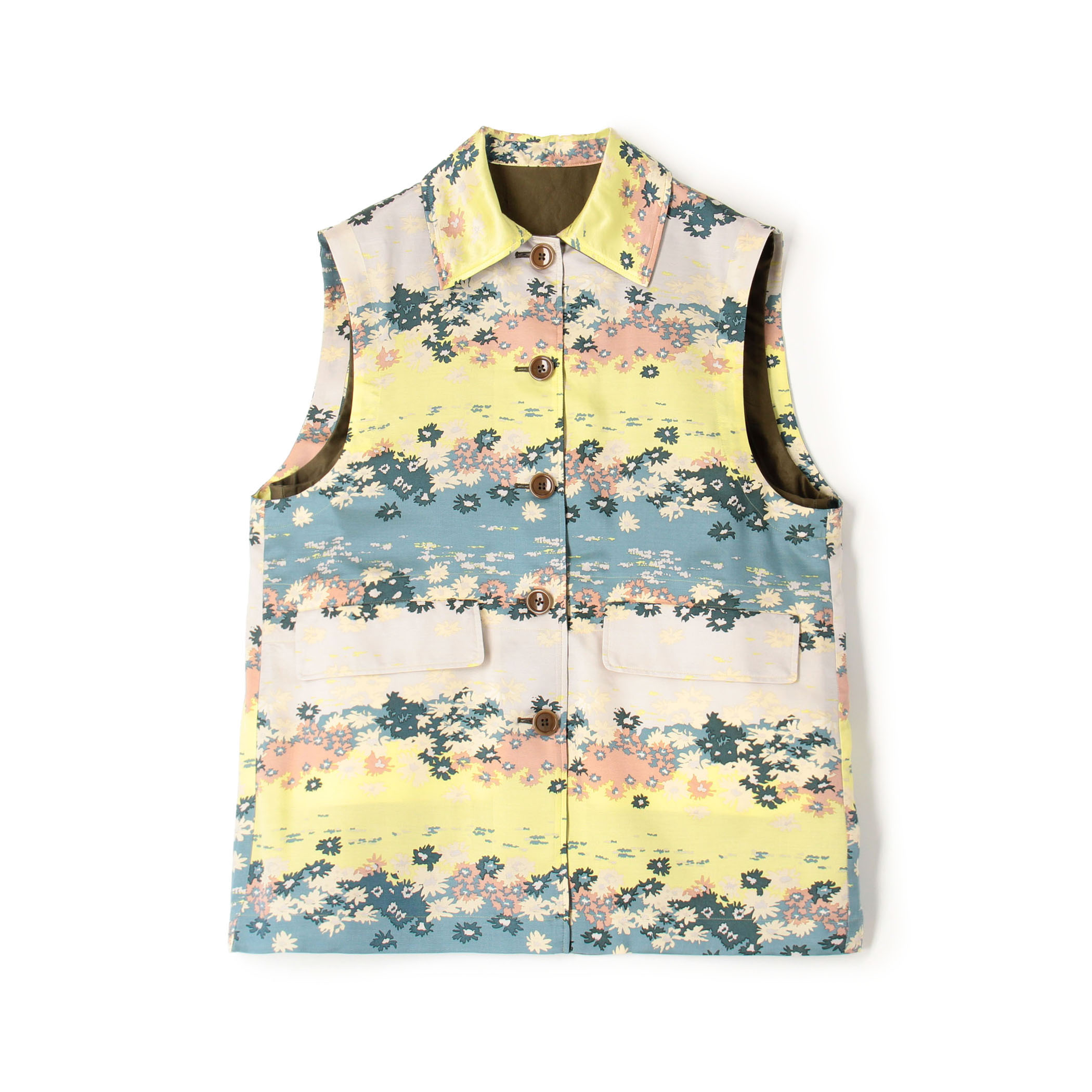 自然のモチーフを定番素材のシルクキュプラにプリントした〈BACCA〉シルクキュプラプリント リバーシブルジャケット。