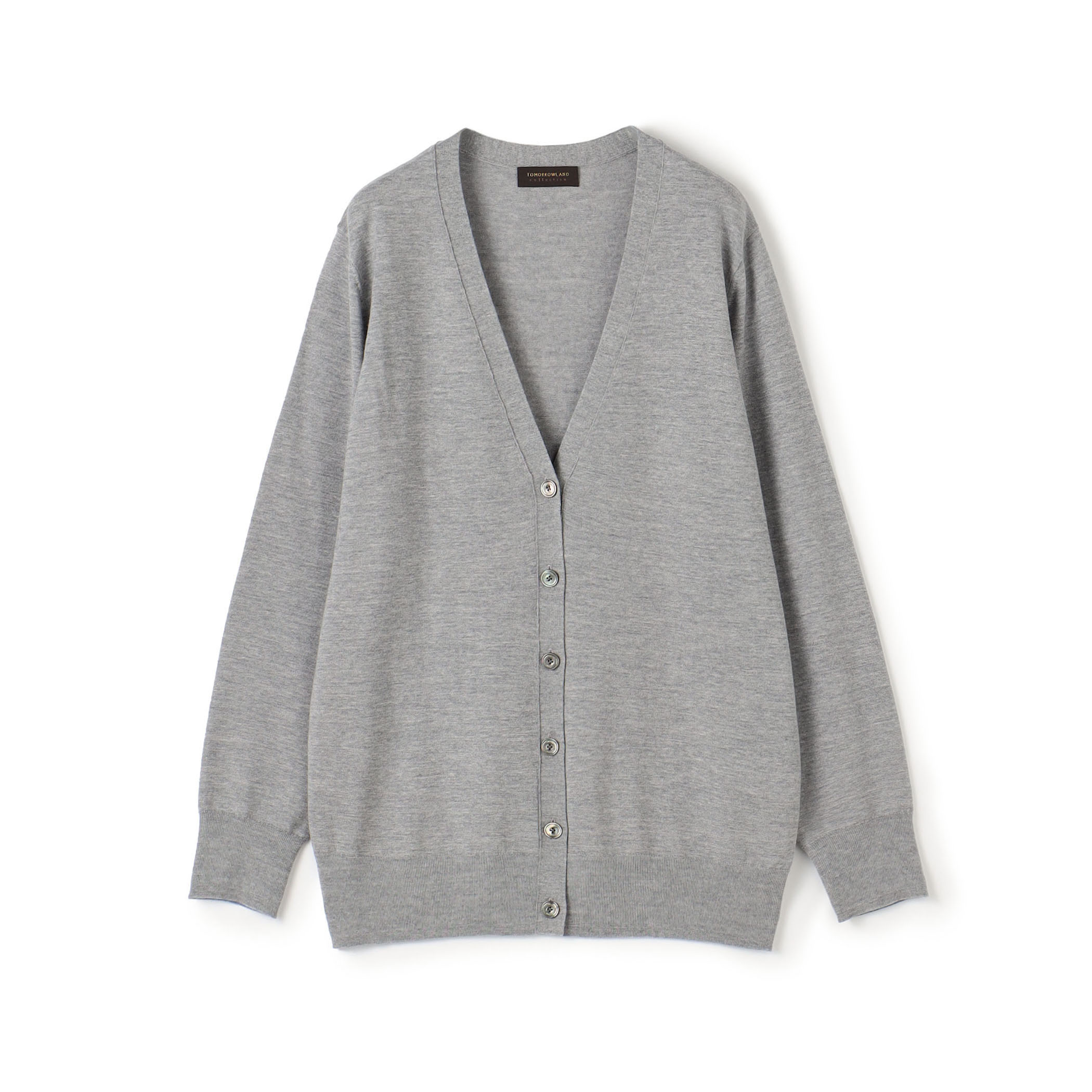 細番手ウールならではのしなやかさと軽さで初秋から着られるベーシックカーディガンは1枚あると便利なアイテムです。