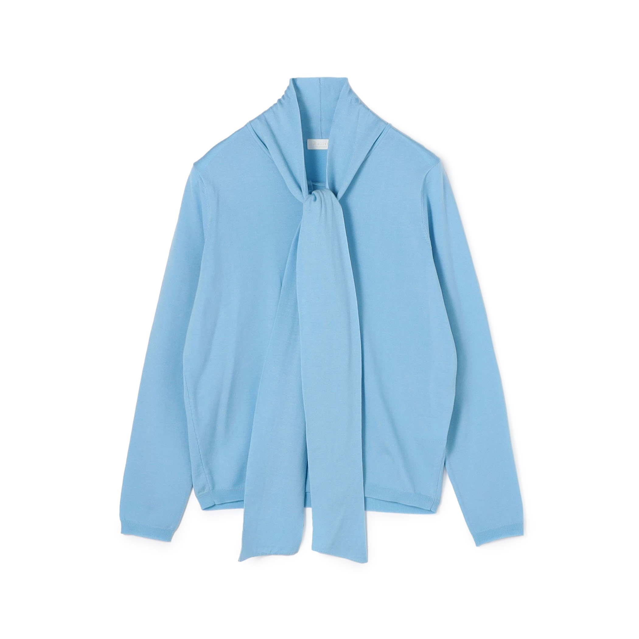 トップスは爽やかなブルーにグレージャケットを合わせ、顔周りは明るい印象に。パンツは暗い色を合わせることですっきりと見えるスタイリングにしたのがポイントです。