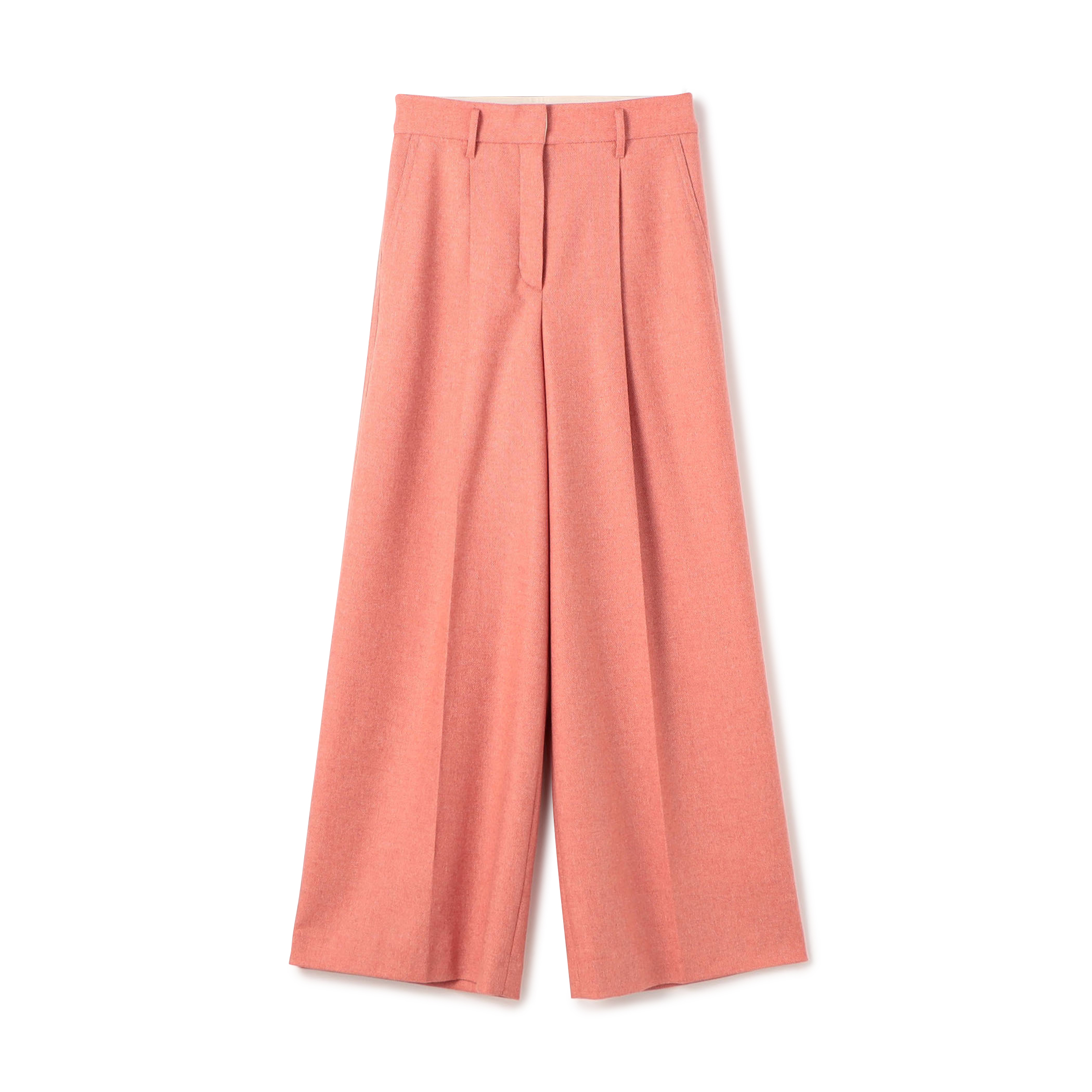 オレンジのツイードのパンツを合わせて、小物は茶色のワントーンでまとめました。