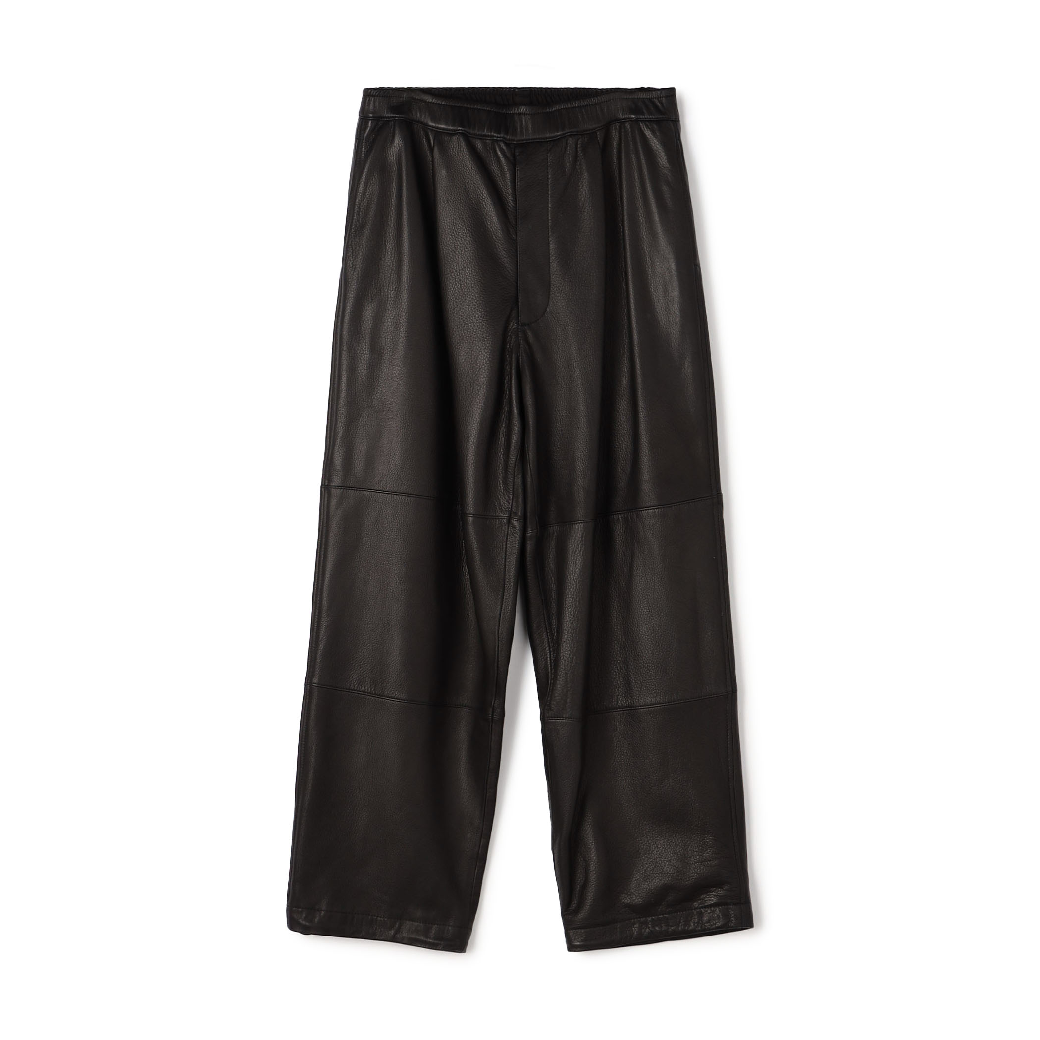 存在感のあるハーフジップのニットを使い、レザーパンツと合わせた大人カジュアルコーデです。