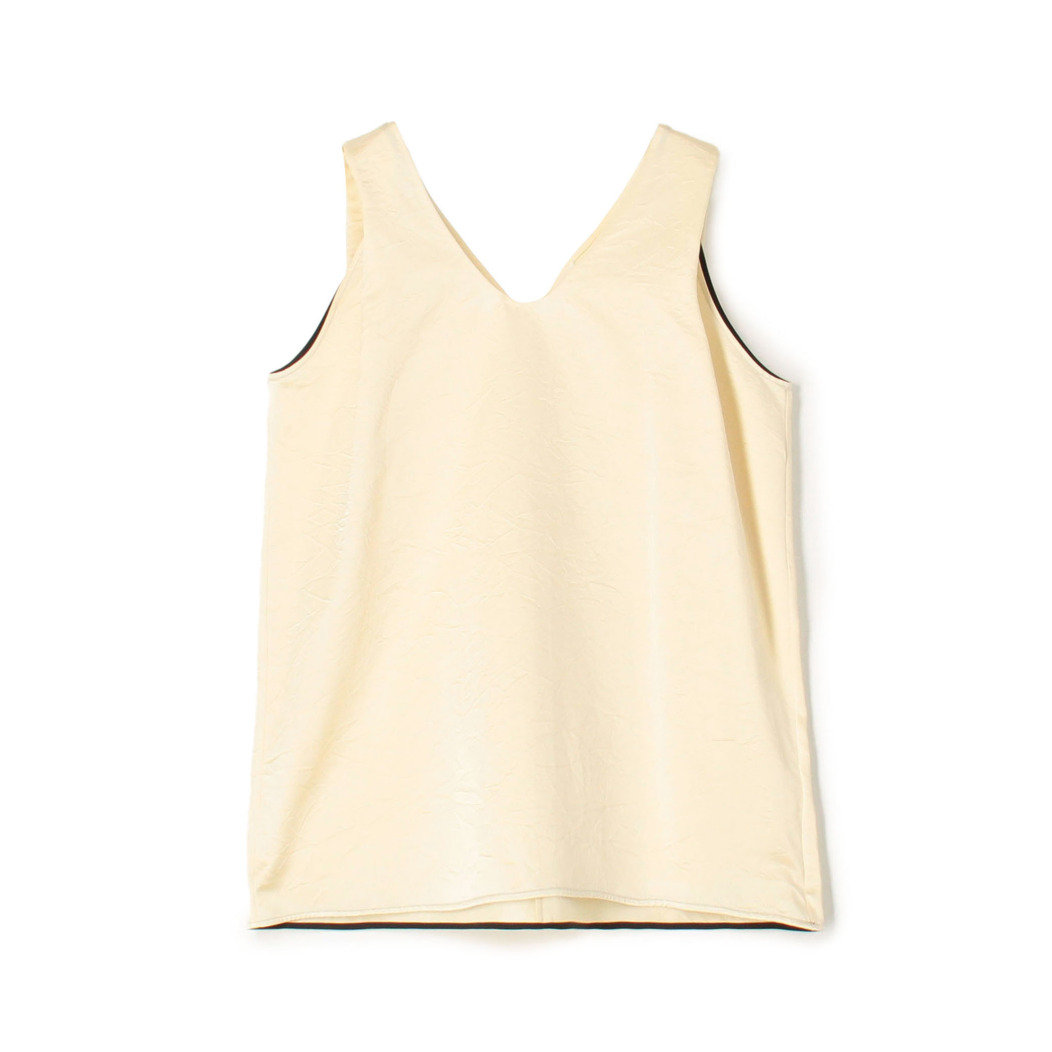 3ボタンのハンサムな雰囲気のジャケットなので、インナーをサテン地で女性らしくまとめました。