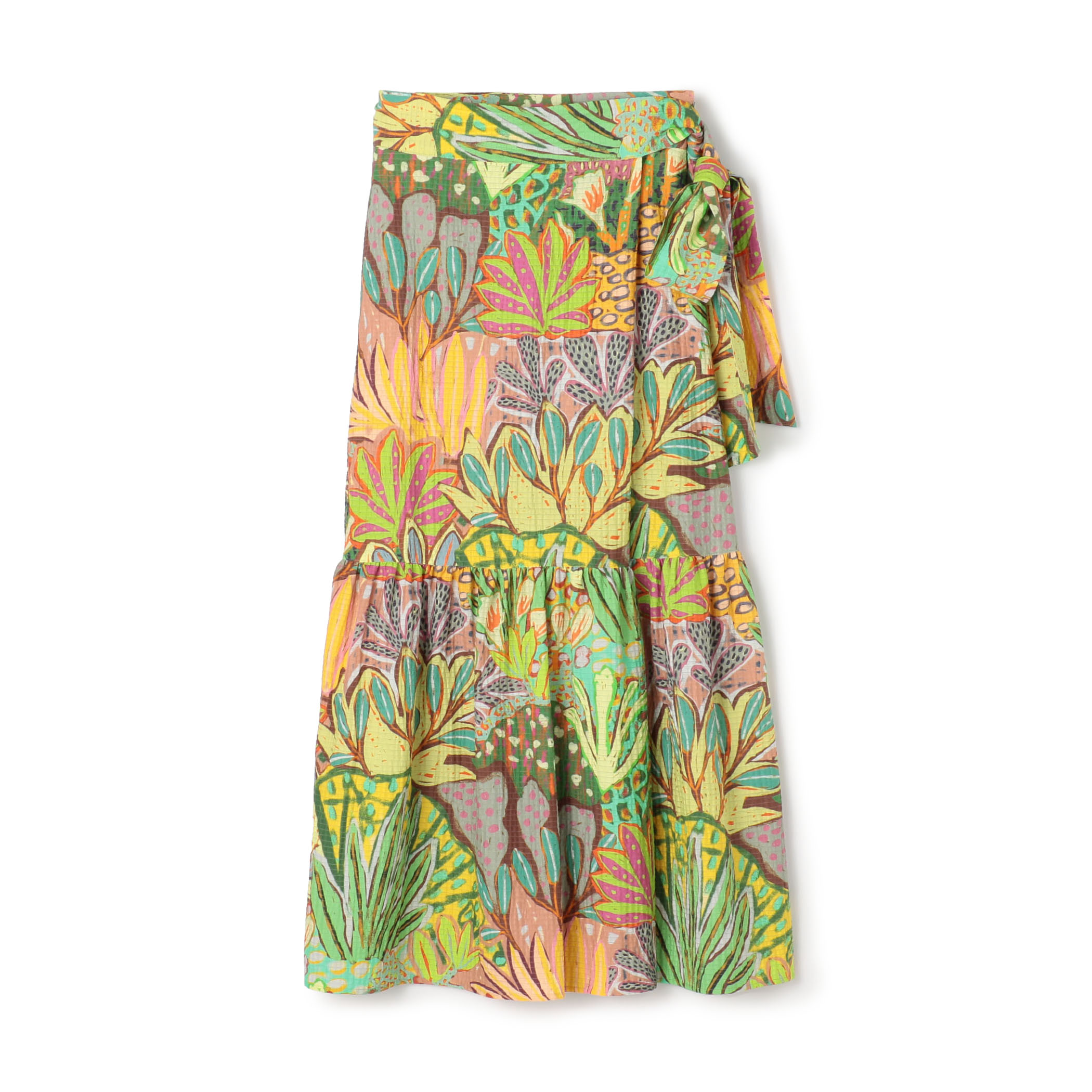大胆なフラワープリントが目を惹く〈CABaN 〉スカートを主役にスタイリング。