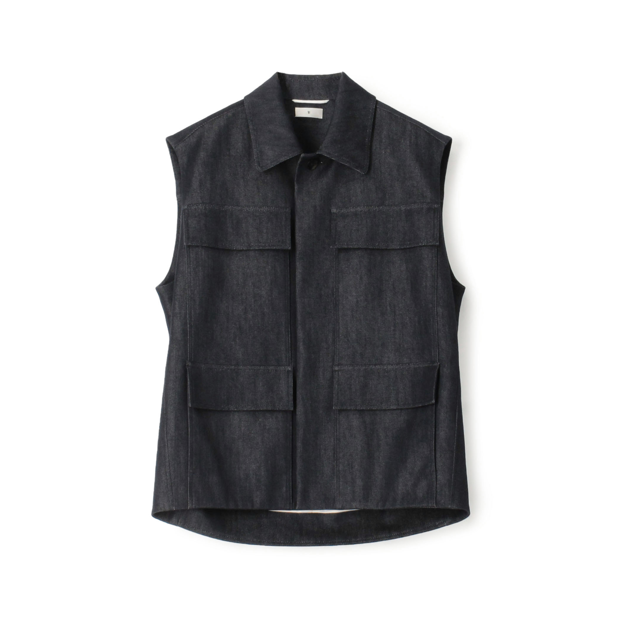 〈TOMORROWLAND .B〉コットンシルクデニムライク ジャケットは、後ろにフォルム感があり、フロントの4ポケットのデザインがポイントです。