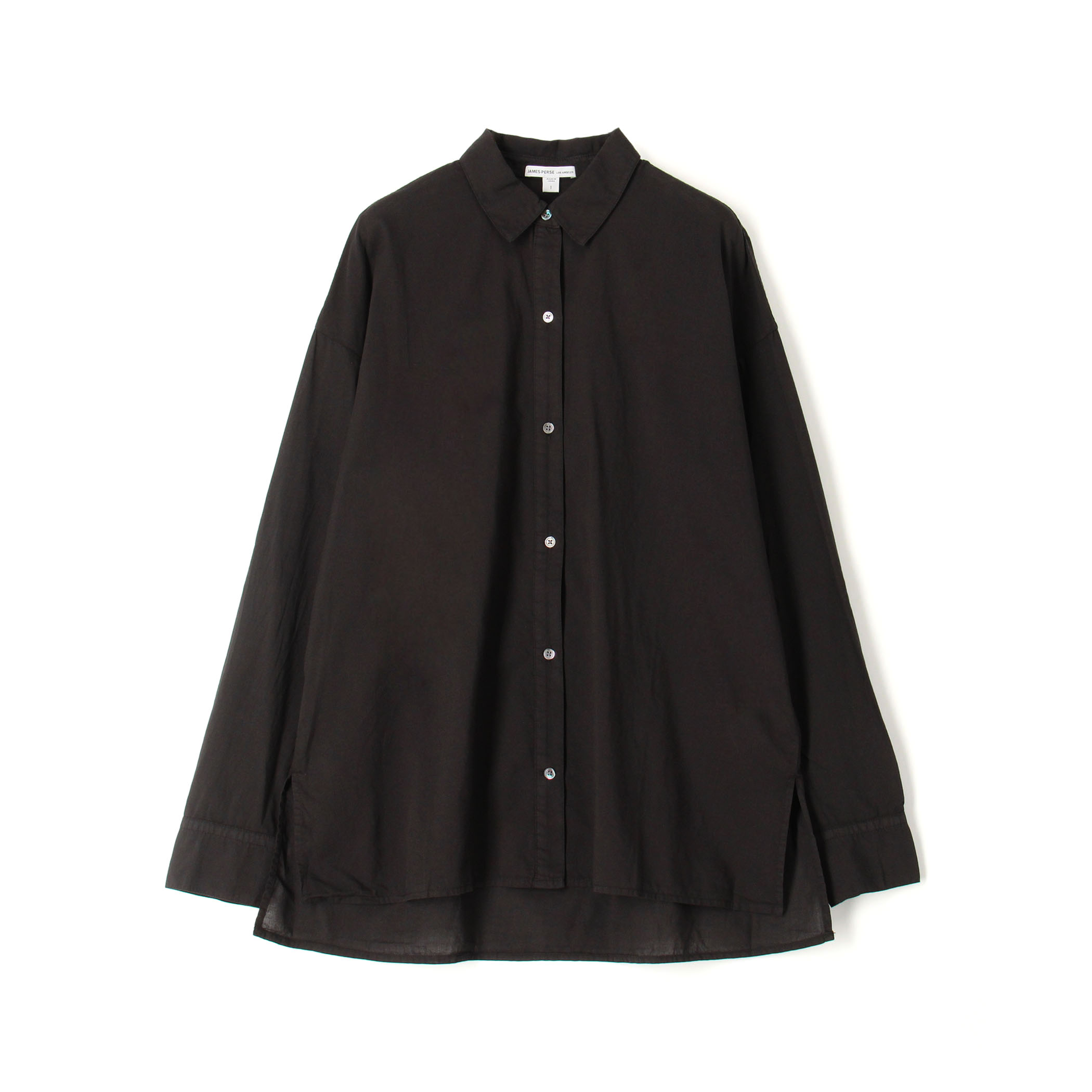 〈JAMES PERSE〉のオーバーサイズフロントボタンシャツはカジュアルなデイリーウェアにぴったりです。