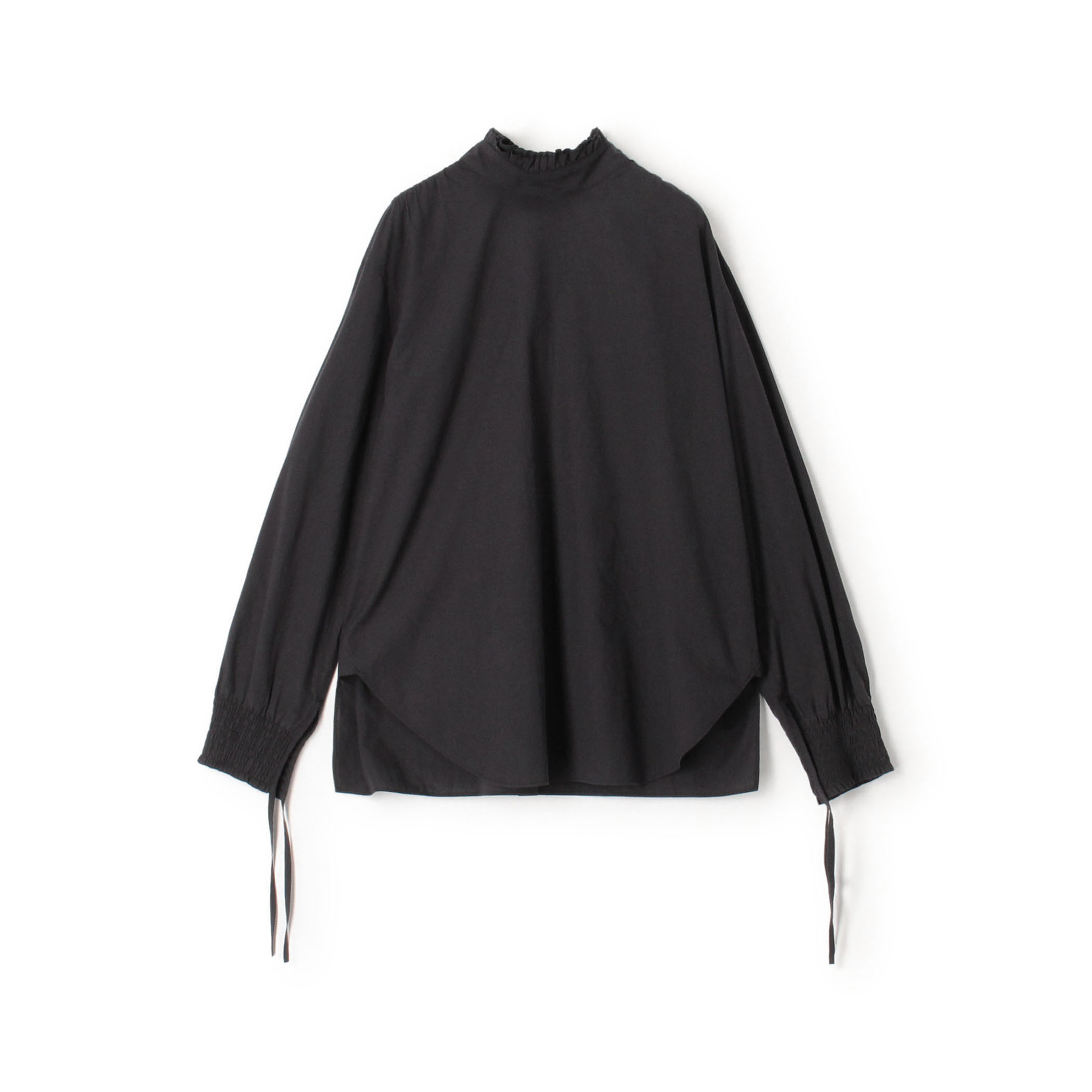 上品な印象のブラウスにワイドシルエットのウールパンツを合せたシンプルなスタイリングです。