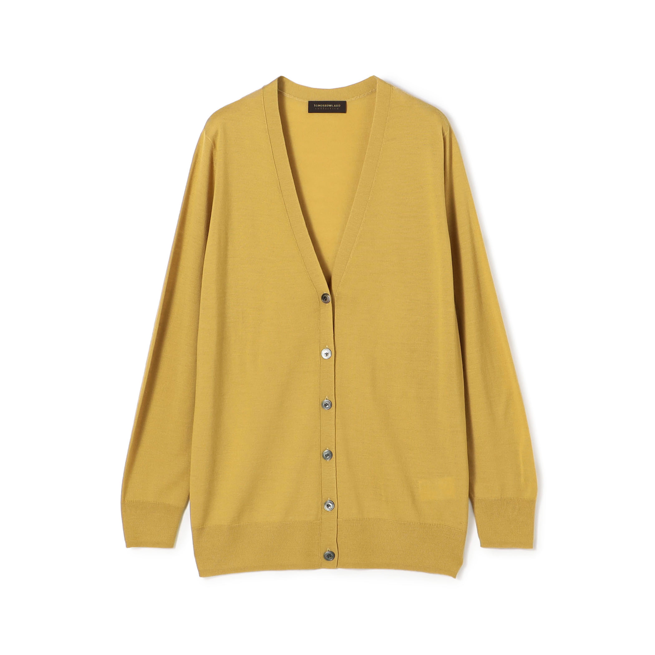 カーディガンは適度にゆとりのあるシルエットにやや長めの丈感でリラックスした大人のバランスに。