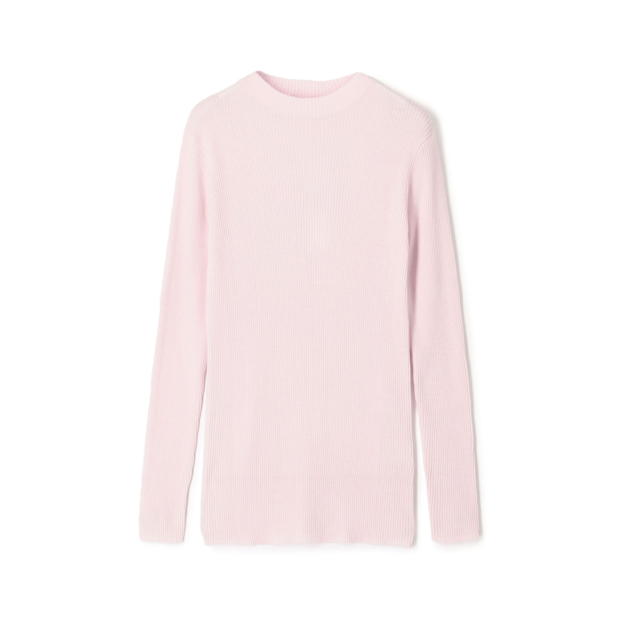 シャツの中に着ている定番リブニットは、ピンクを入れました。ピンクも甘くなりすぎ無い落ち着いたカラーなので、スタイリングに取り入れて頂きやすい一枚です。