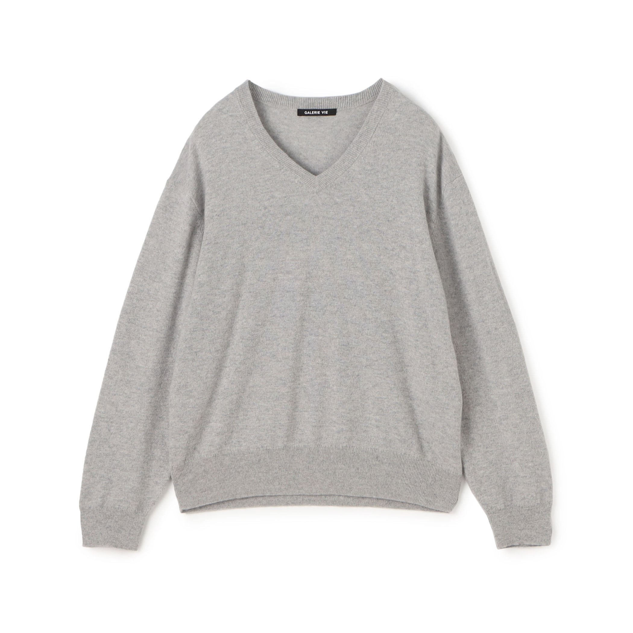 スコットランドカシミヤのニットはボックスシルエットのリラックス感あるサイズと抜け感の出るVネックがおすすめ。