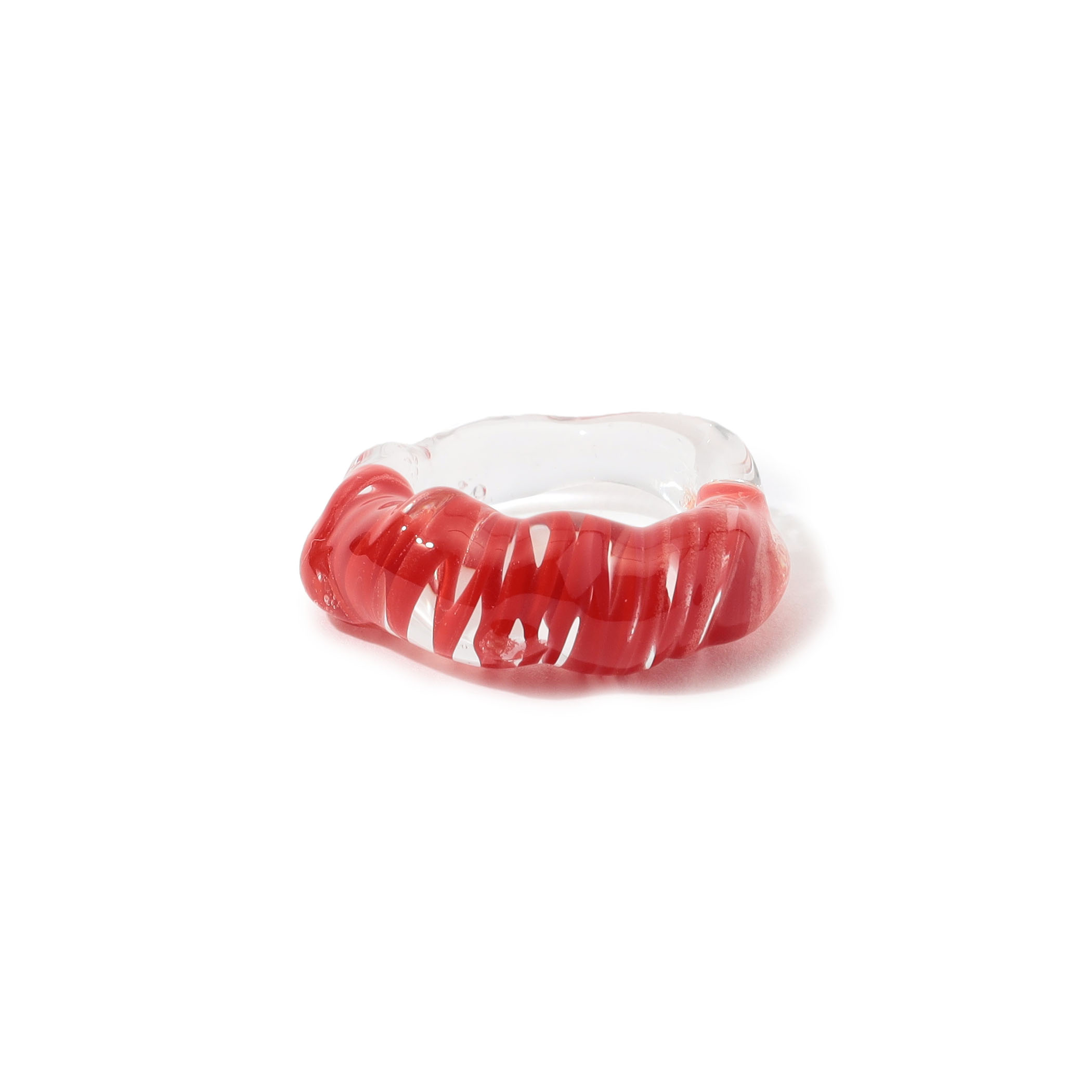 モヘアのピンクに合わせて、アクセサリーで赤をプラスしました。
