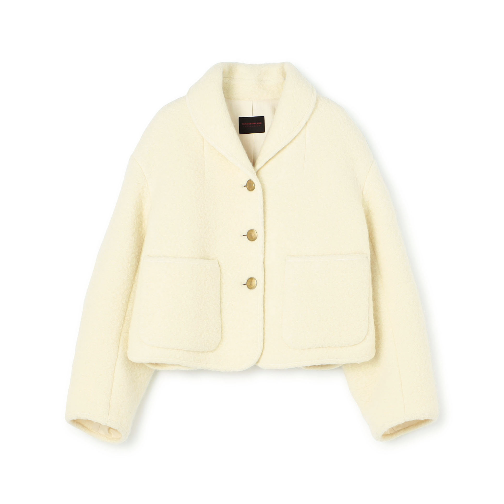〈TOMORROWLAND collection〉のジャケットはコンパクトなフォルムとショール風の襟でミニマルな印象の一着です。