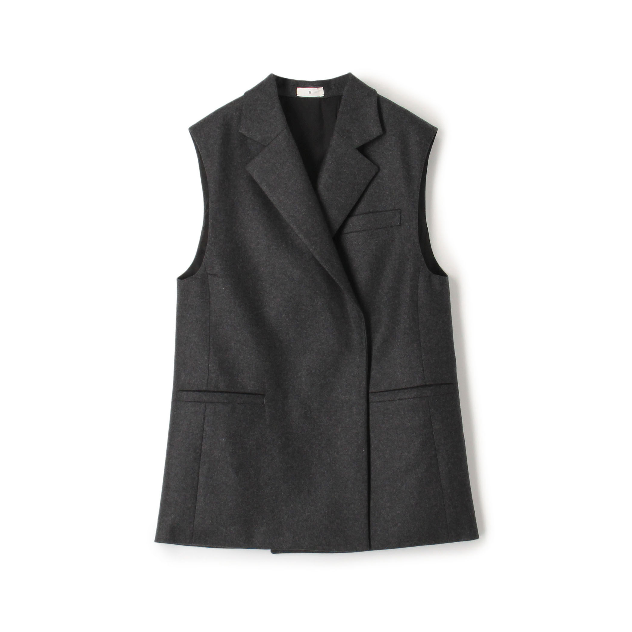 スタイリッシュさを引き出してくれる〈TOMORROWLAND.B〉のシルエットの美しいジレと合わせて、緊張感の高いスタイリングに。