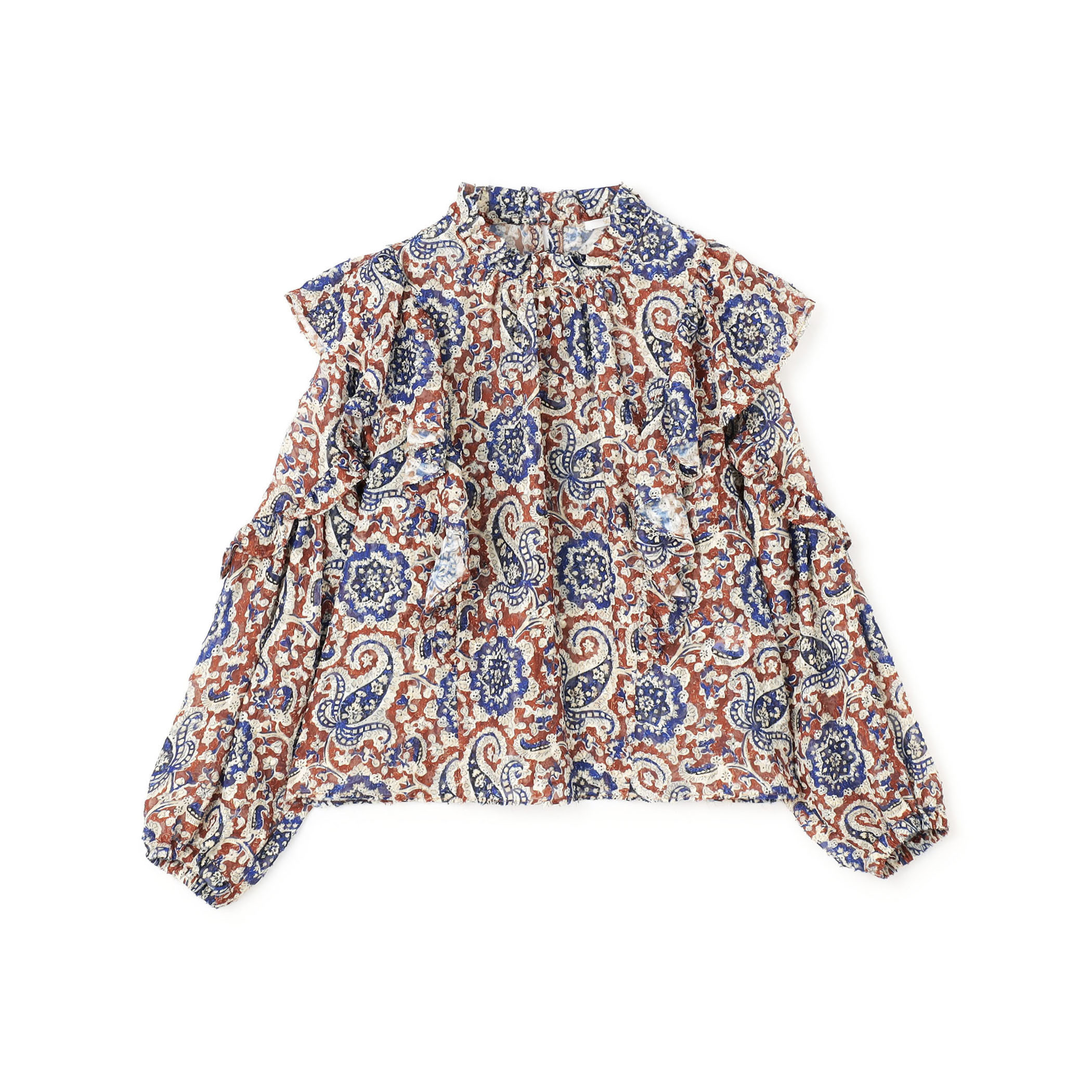 ブラウスとニットの赤を差し色にする事で、冬でも重たくなりすぎない装いに。