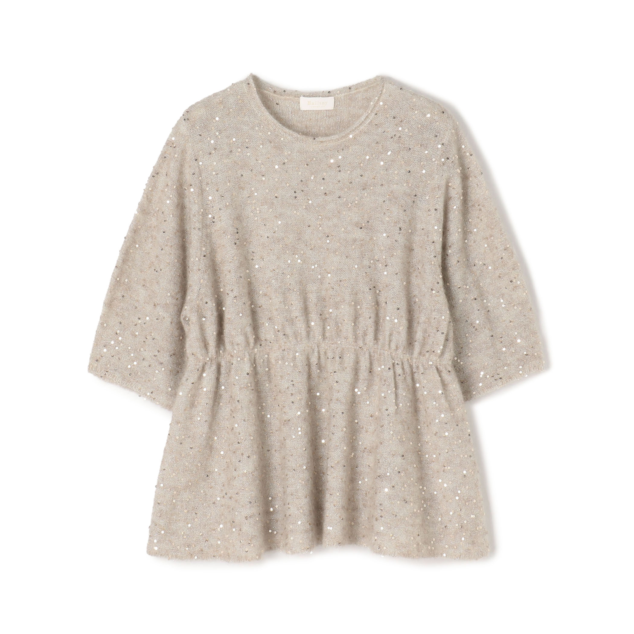 〈Ballsey〉ラメスパンコールモヘア ペプラムプルオーバーは、全体に散りばめたスパンコールと、ペプラムシルエットが特別感を後押しするニット。