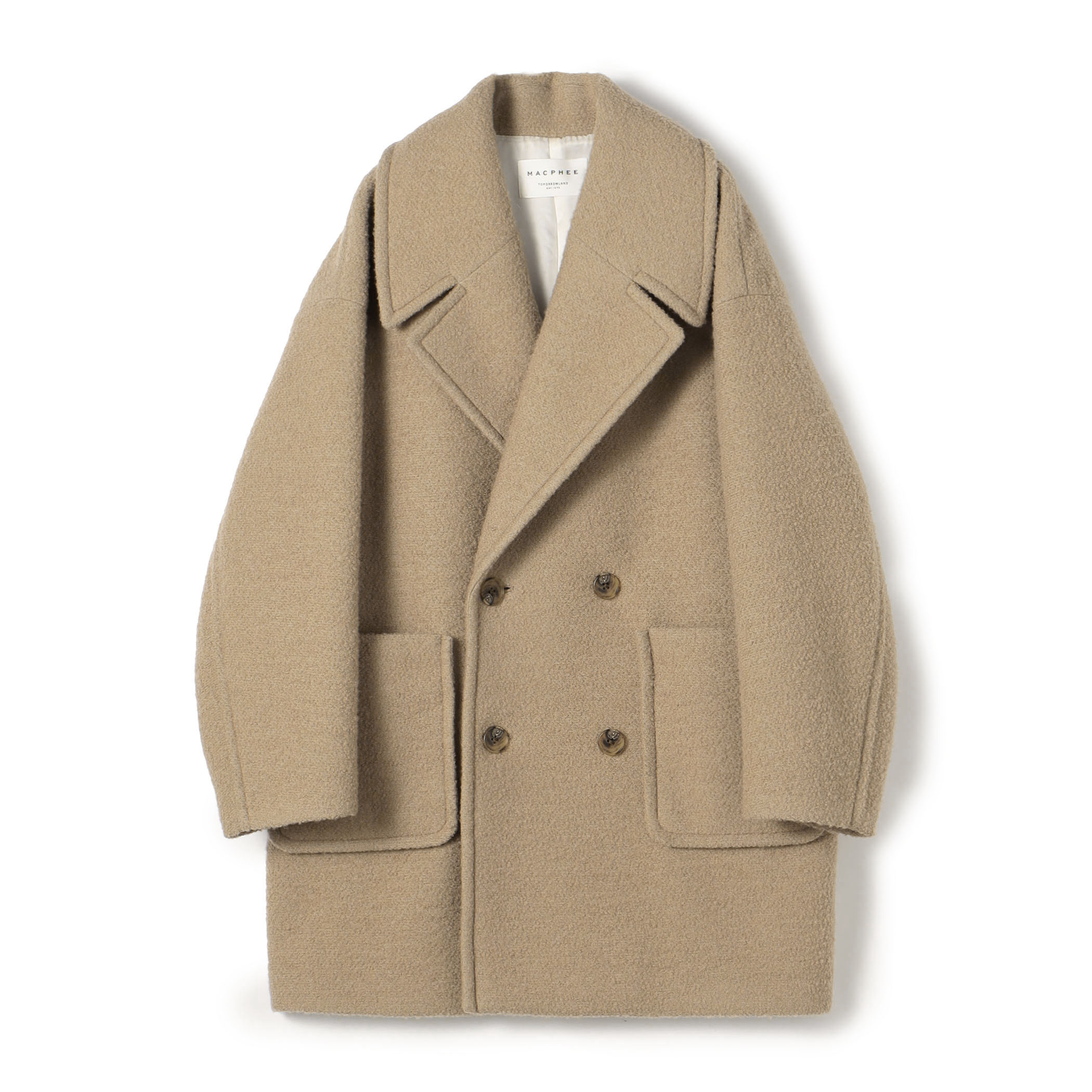 〈MACPHEE〉のウールコートはオーバーサイズにドロップショルダーでさらりと羽織るだけで抜け感のある着こなしが決まる一着です。