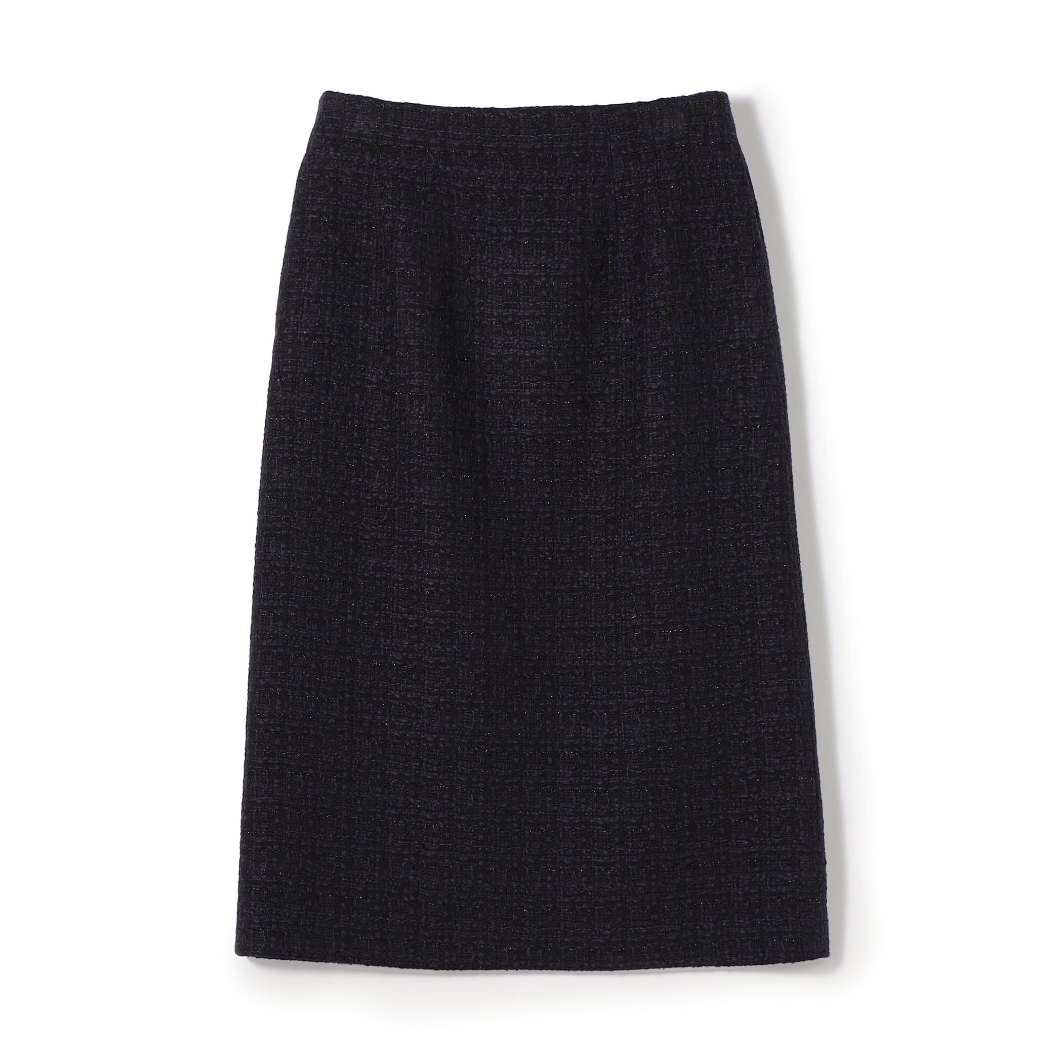 〈Ballsey〉ラメミックスツイード セミダブルクルージャケットは、同素材のスカートとセットアップで着用すればオケージョンシーンに大活躍するアイテム。