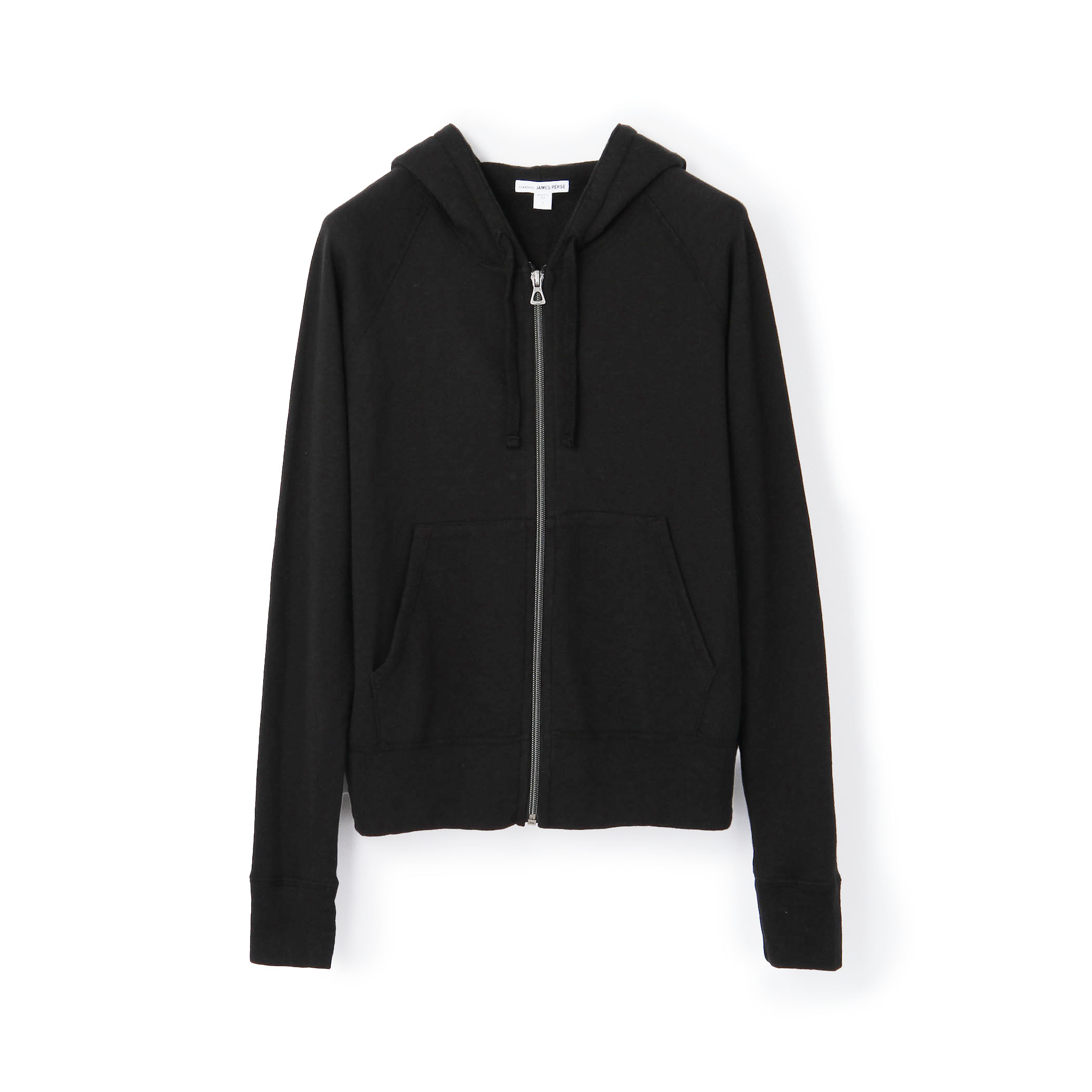 〈JAMES PERSE〉の人気アイテムの裾リブジャージーパンツとコットンパーカを合わせたスタイリング。