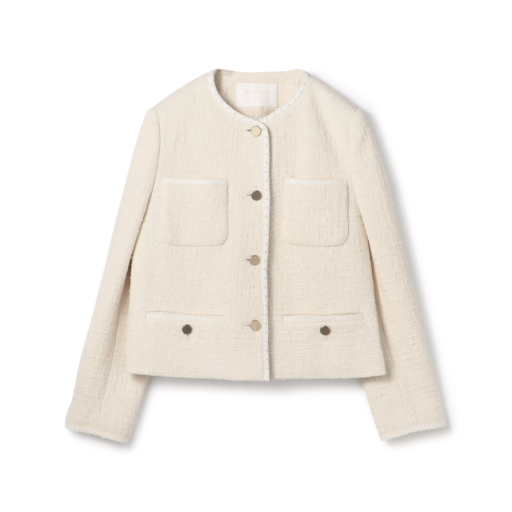 コンパクトな着丈ながら4ポケットのディテールでクラシカルな印象でお召しいただける〈Ballsey〉スラブコットンツイード Vクルーネックジャケット。
