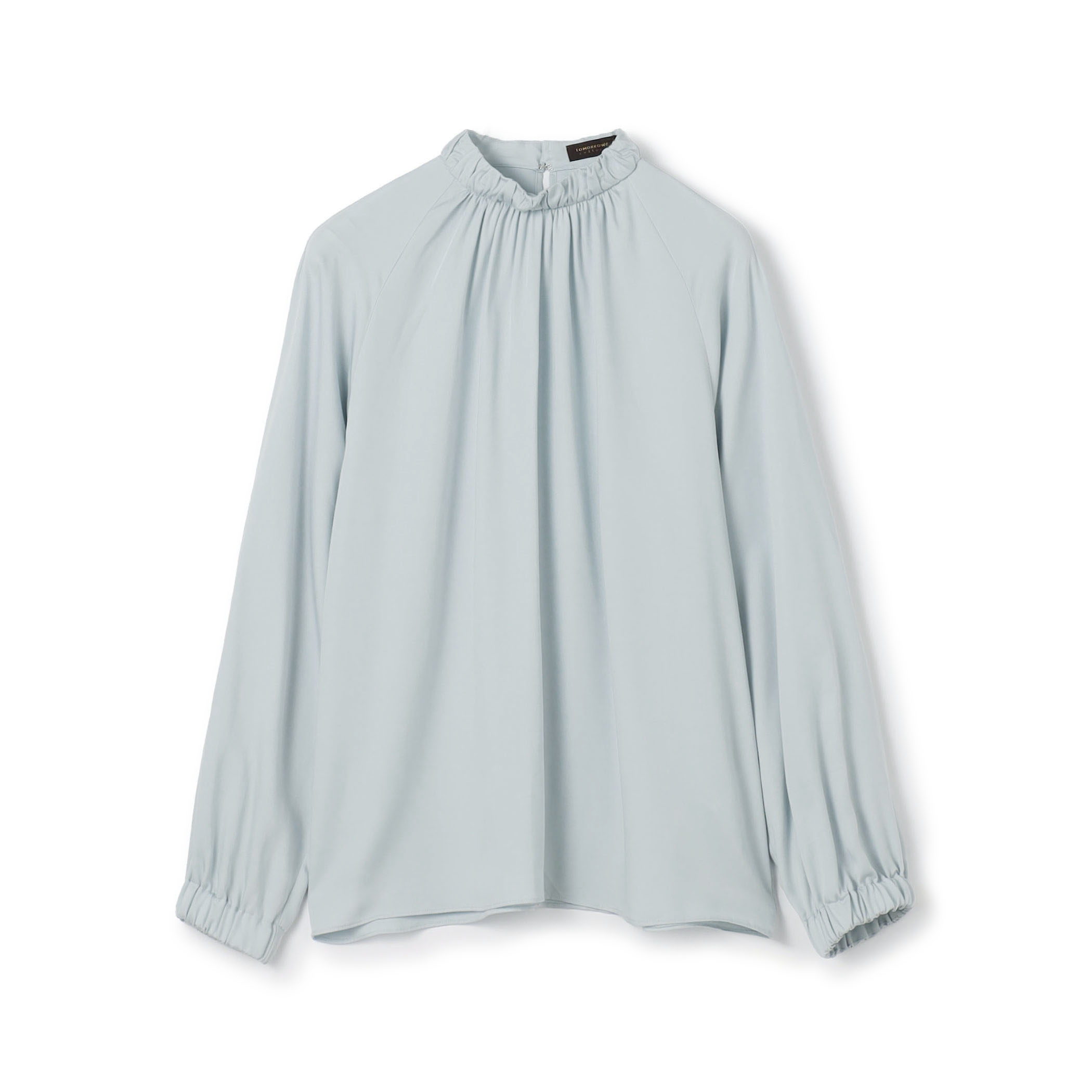 〈TOMORROWLAND collection〉ウォッシャブルサテン スタンドギャザーカラーブラウスは、体型を気にせずに着用できるゆとりのあるサイズです。
